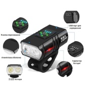 Велоліхтар 2285-2XPE Ultra Light Aluminium вбудований акумулятор, індикація заряду, Waterproof