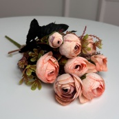 Букет Ранункулюсів штучний, 30 см, 5 стебел, 8 квіток/мікс (2 букети в уп.). Колір: персиковий