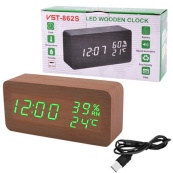 Електронні настільні годинники VST-862S-4 коричневі з зеленим підсвічуванням, з датчиками температури та вологості