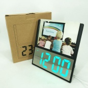 Електронний дротовий настільний цифровий годинник DS-6608 з фоторамкою, зелене підсвічування. Колір: чорний