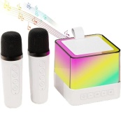 Портативна караоке система з двома мікрофонами Bluetooth акустична колонка для дому та вечірок White