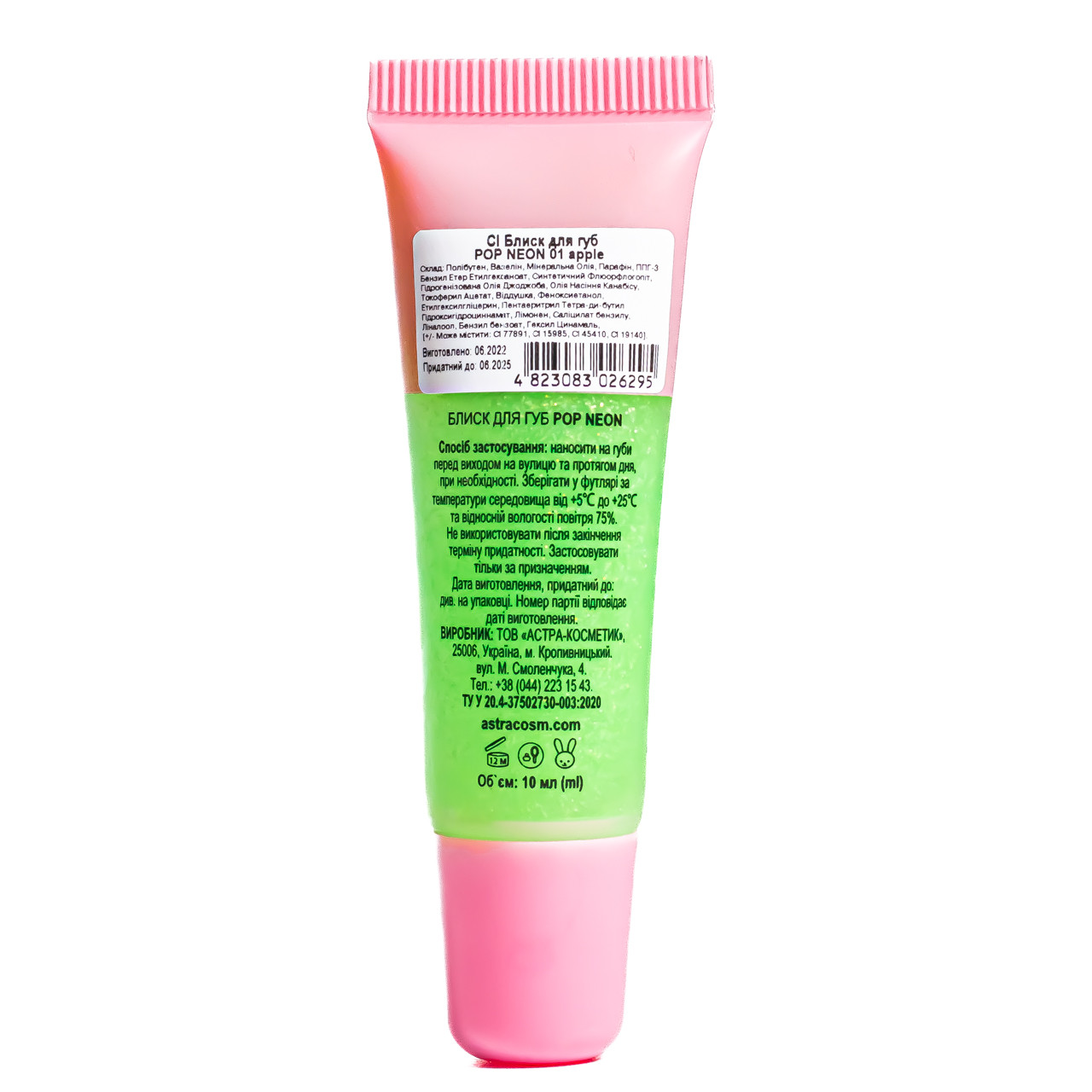 Блиск-бальзам для губ Colour Intense Lip Balm Pop Neon з конопляною олією 10 мл № 01 Яблучний