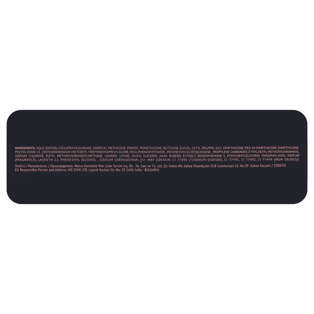 | Додатковий ефект | Выравнивание тона лица|Защита от свободных радикалов|Защита от солнца|Коррекция мелких недостатков|Матирование|Питание|Разглаживание|Смягчение|Тонизирование|Увлажнение|Успокоение|Устранение блеска|Устранение кругов под глазами |