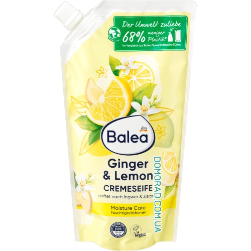 Balea Рідке мило-доповнювач за ароматом лимону і імбиру ретельно очищує руки, при цьому не порушуючи природний водний баланс шкіри. Ідеальний для щоденного використання