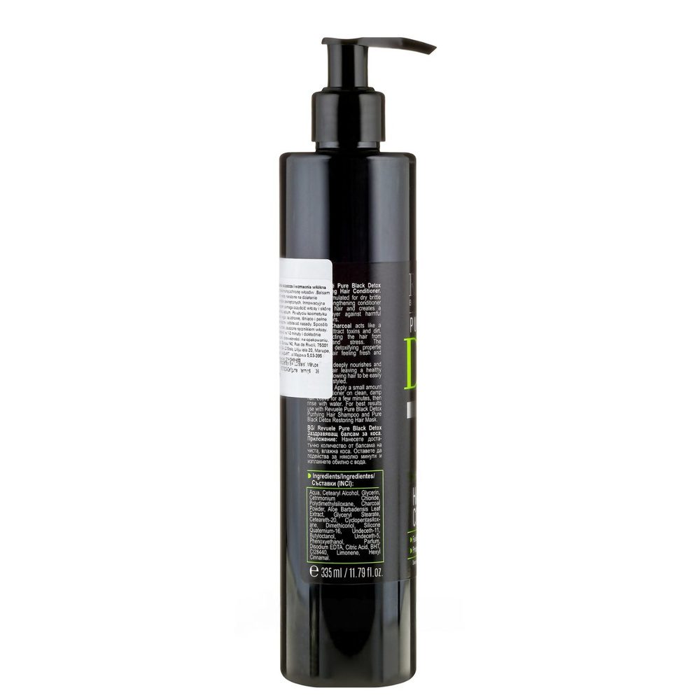 легко вимивається з волосся.Спосіб застосування: нанести невелику кількість кондиціонера на чисте, вологе волосся. Залишити на кілька хвилин, потім змити водою. Для досягнення найкращих результатів використовуйте шампунь для очищення волосся Revuele Pure Black Detox і відновлювальну маску Pure Black Detox.Об'єм: 335 мл.