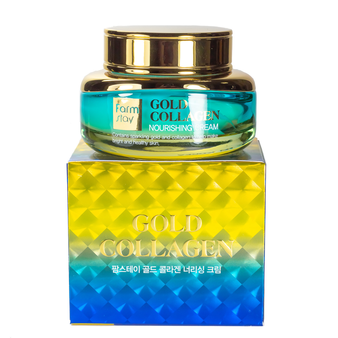 Крем для обличчя поживний із золотом і колагеном FarmStay Gold Collagen Nourishing CreamКрем для обличчя збагачений сяйними частинками золота та колагеном, завдяки чому дарує шкірі сяйво, гладкість, пружність і еластичність. Поживний крем забезпечить належну турботу сухій шкірі за перших ознак старіння. Його омолоджувальний ефект наблизить до незмінної роками гладкості шкіри без зморщок. Варто довіритися цьому диво-еліксиру.Особливості FarmStay Gold Collagen Nourishing Cream:містить колаген для інтенсивного зволоження, підтягування та зміцнення шкіри;
