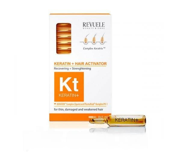 Особливості Revuele Keratin+ Ampoules Hair Restoration Activator:зміцнює волосяні фолікули;