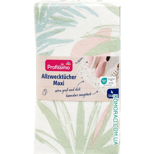Універсальні ганчірки Profissimo Maxi вражають своїм високоякісним абсорбуючим волокном флісу. Вони надзвичайно абсорбуючі, абсолютно міцні та гарантують високий рівень поглинання бруду, незалежно від того, чи використовуються вони вологими чи сухими.