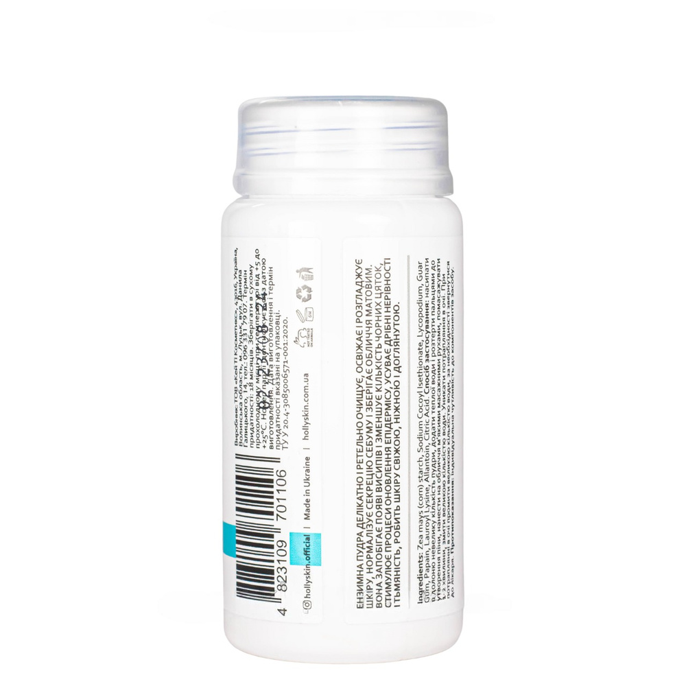 Ензимна пудра від українського бренду Hollyskin – важливий етап очищення. Її використовують після демакіяжу перед тонізацією. Засіб дарує шкірі м'якість та шовковистість. Ензимна пілінг-пудра делікатно відлущує відмерлі клітини, глибоко очищає пори, розгладжує та ніжно полірує шкіру, робить її свіжою, сяючою та доглянутою. Засіб не руйнує гідроліпідну мантію, запобігає втраті вологи, сухості та лущенню.
