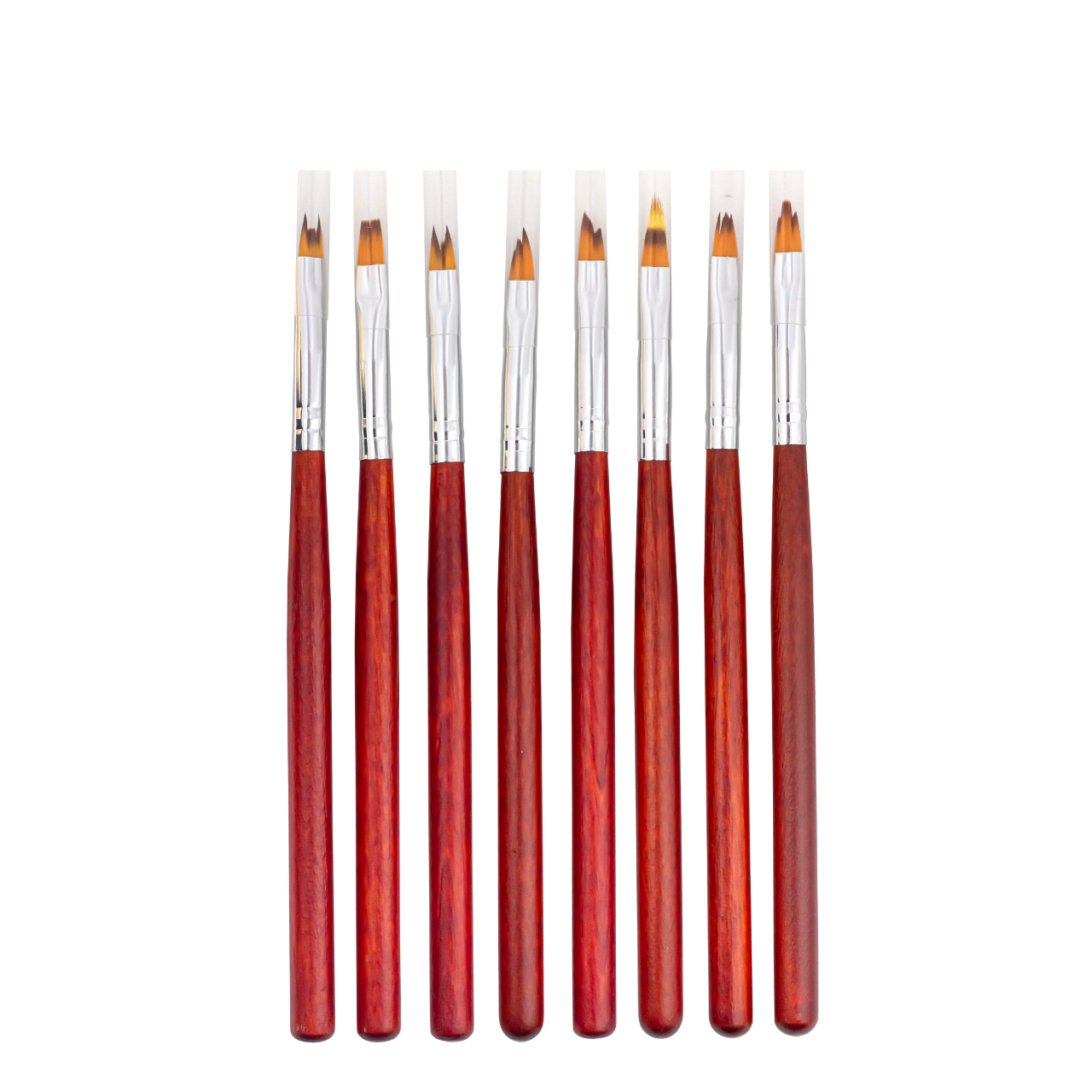 Набір пензлів для дизайну нігтів 8 штук з дерев'яною ручкою