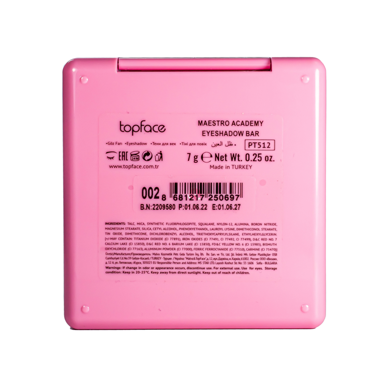 Ідеально підібрана палітра тіней для повік Maestro Academy Eyeshadow Bar від бренду Topface стане незамінним помічником у створенні щоденних образів. Оптимально підібрані природні та яскраві відтінки палітри кольорів відмінно підійдуть для створення денного і вечірнього макіяжу. Для ніжного образу використовуйте світлі кольори, м'яко позначаючи нижню та верхню складки повіки.