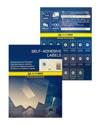 Самоклеючі етикетки Buromax - універсальні етикетки з клейким шаром, які використовуються для друку на лазерних, струменевих принтерах і копіювальних апаратах. Якісний матеріал етикеток забезпечує чіткий друк і міцну клейкість на будь-якій поверхні.