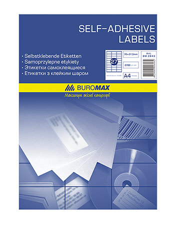 Самоклеючі етикетки Buromax - універсальні етикетки з клейким шаром, які використовуються для друку на лазерних, струменевих принтерах і копіювальних апаратах. Якісний матеріал етикеток забезпечує чіткий друк і міцну клейкість на будь-якій поверхні.