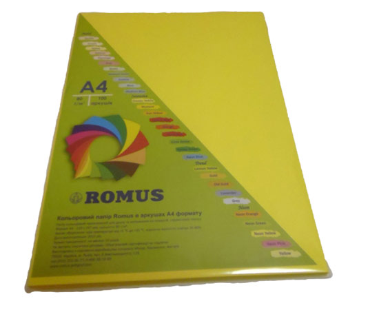Папір кольоровий Romus A4 160 г/м2 100 аркушів Канарково-жовтий (R50805)