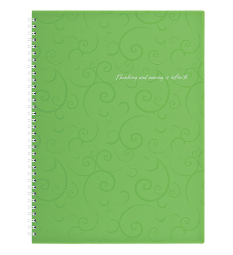 - Внутрішній блок зошита скріплений бічною спіраллю, що дозволяє легко перевертати і загинати сторінки (все лягає ідеально).