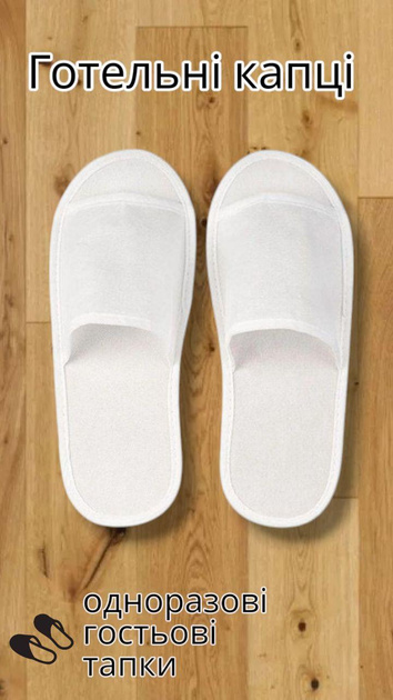Тапочки одноразові готельні флізелінові 1 пара (55192). Зображення №2 Тапочки одноразові готельні флізелінові 1 пара (55192). Зображення №3