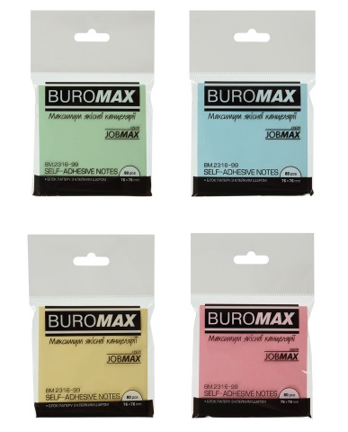 Папір для нотаток Buromax з клейким шаром 76х76 мм 80 арк Пастель асорті (BM.2316-99)