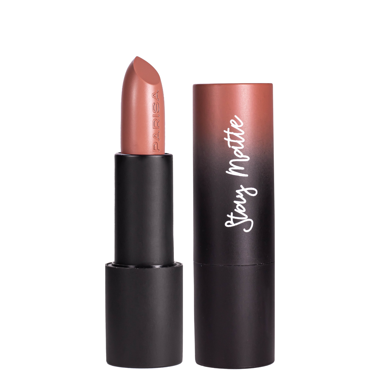 Матова помада для губ Parisa Cosmetics Stay Matte з кремовою текстуроюПомада для губ Parisa Cosmetics Stay Matte – це косметичний продукт для створення матового ефекту на губах. Вона має гладку та кремову текстуру, яка легко наноситься на губи, не залишаючи при цьому відчуття липкості.Помада Stay Matte має яскравий та насичений відтінок, який тривалий час зберігається на губах, не змащуючись та не розтікаючись. Вона має гарну стійкість, що дозволяє зберегти яскравість кольору на губах протягом декількох годин.Помада Parisa Cosmetics Stay Mattе також збагачена зволожувальними та поживними компонентами, які доглядають губи, не пересушуючи їх. Ці компоненти забезпечують комфортне нанесення та збереження еластичності губ, роблячи їх м'якшими та доглянутішими.Ця матова помада від Parisa Cosmetics підходить для будь-якого типу шкіри та створює ефектно та привабливий вигляд на губах. Вона може використовуватися як для повсякденного макіяжу, так і для особливих випадків, коли потрібний яскравий та насичений колір губ.