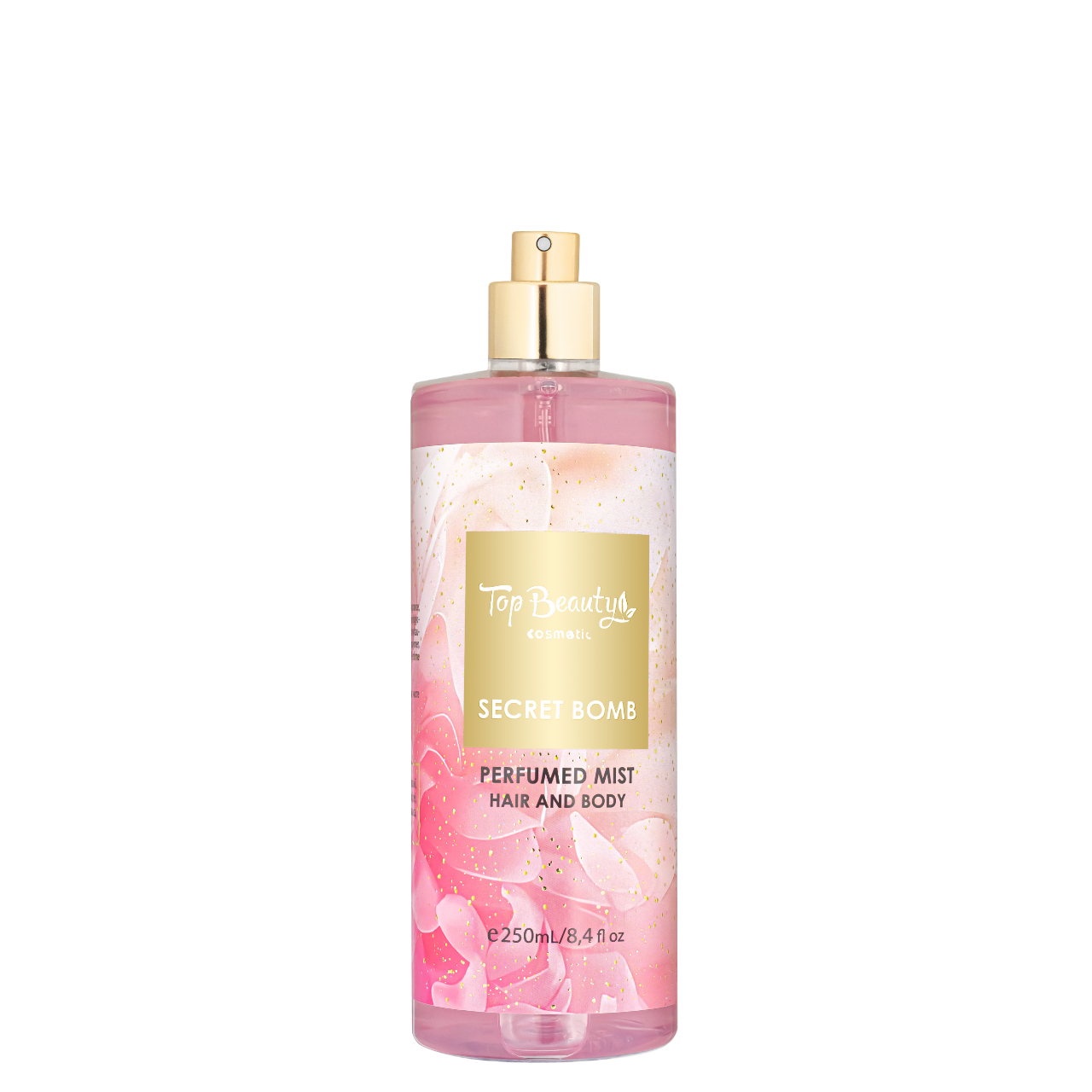 Парфумований спрей-міст для тіла та волосся Top Beauty Secret BombСпрей-міст для тіла від Top Beauty Secret Bomb насичує шкіру вологою і надає їй спокусливого аромату, що підсилює вашу привабливість.Цей спрей має унікальну формулу з ароматичними оліями, які дбайливо доглядають шкіру тіла, живлять її та залишають на ній ніжний аромат. Він легко наноситься на шкіру завдяки зручному розпилювачу, дарує відчуття чистоти та свіжості протягом усього дня.Тип аромату: квітковий.Початкова нота: цитрус танжело, полуниця, ананас та маракуя.Нота серця: півонія Шангрі-ла з Тибету, жасмин, брусниця, ванільна орхідея – надає аромату кремового елементу.Кінцева нота: кашмеран, мускат, італійська сосна Sunstruck Pine.Особливості:має легку зволожувальну формулу;