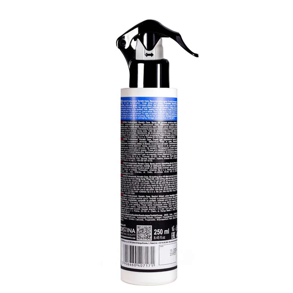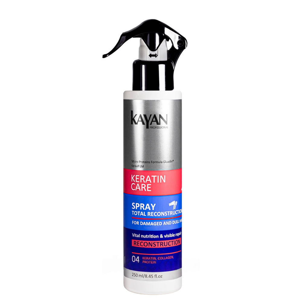 Особенности Kayan Professional Keratin Care Hair Spray:формула з кератином, колагеном, протеїнами пшениці;