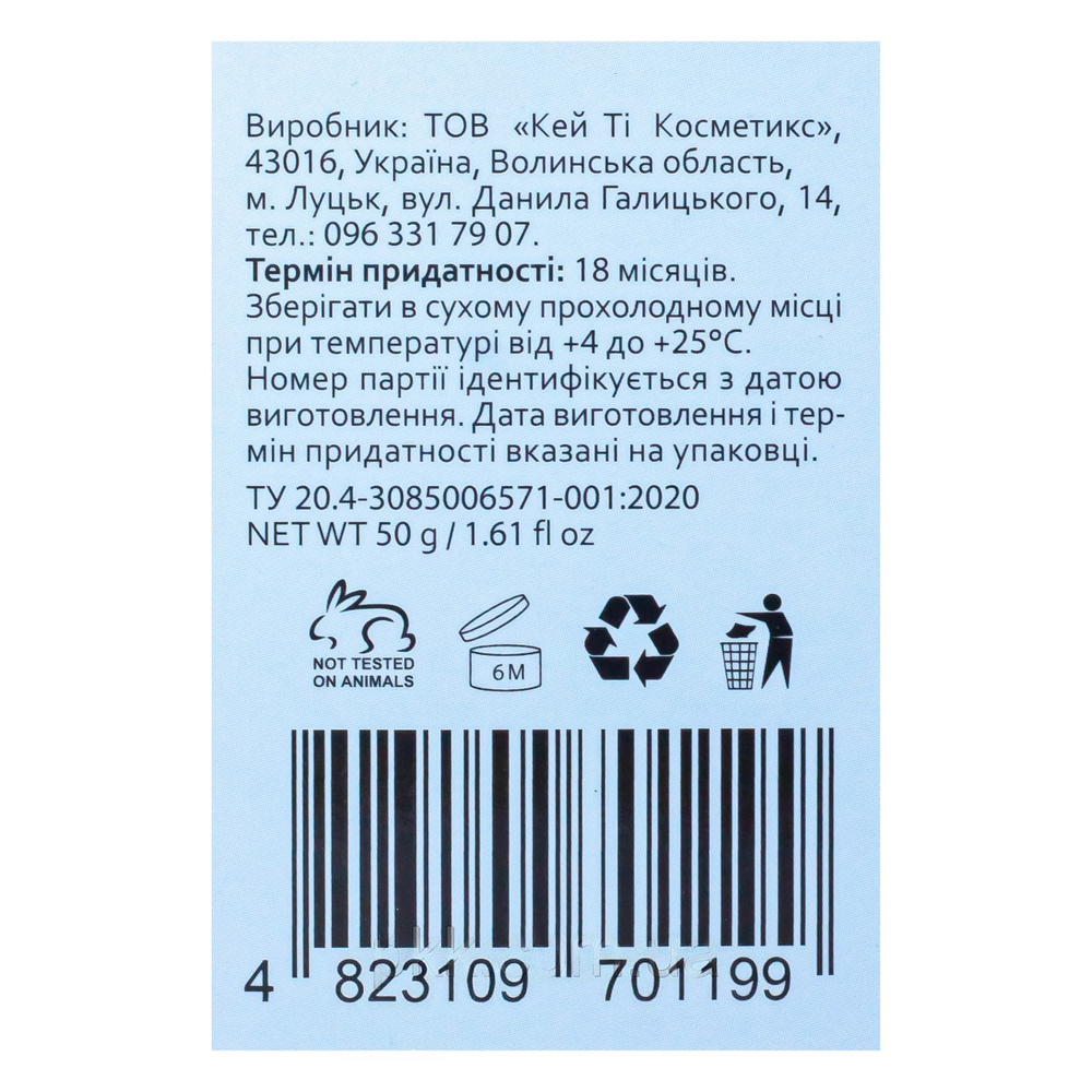Склад: Aqua (Water), Camellia Sinensis (Green Tea) Leaf Hydrosol, Kaolin, Calamine, Titanium Dioxide, Propylene Glycol, Glycerin, Salicylic Acid, Stearic Acid, Palmitic Acid, Aloe Barbadensis Leaf [CO2] Extract, Camellia sinensis [CO2] Extract, Matricaria Сhamomilla Flower [CO2] Extract, Citrus sinensis [CO2] Extract, Equisetum arvense [CO2] Extract, Bidens tripartite [CO2] Extract Bisabolol, Fragrance (Parfum), Sodium Hydroxide, Tocopheryl Acetate, Ethylhexylglycerin, Phenoxyethanol.