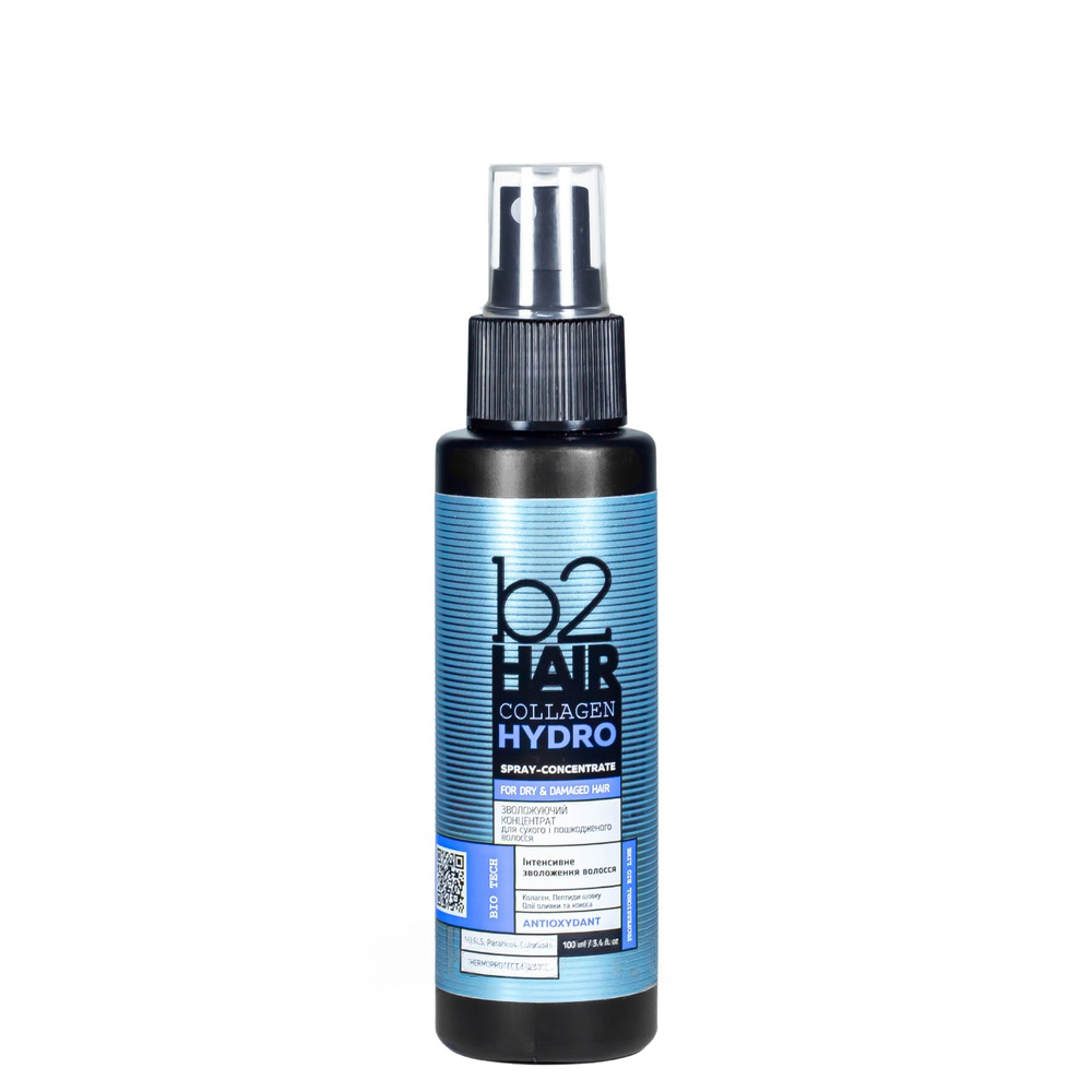 Інтенсивно зволожувальний спрей B2 Hair Collagen Hydro 100 мл Зволожувальний концентрат B2 Hair Collagen Hydro для сухого та пошкодженого волосся допоможе вашому волоссю виглядати довершено та зробить його слухняним та гладеньким. Таку дію забезпечить склад спрею:пептиди шовку — захищають волосся від структурних пошкоджень в результаті випрямлення, живить, не обтяжуючи волосся, зберігаючи об‘єм; колаген — активізує ріст волосся, бореться з випадінням, зберігає блиск; олія оливи — допомагає позбутися лупи, очищує шкіру голови, лікує посічені кінчики, зміцнює стрижень в цілому; олія кокоса – пом’якшує та зволожує; Моноі де Таїті — відновлює пошкоджене волосся, має кондиціонуючі властивості, надає блиск та покращує розчісування.Концентрат є останнім кроком в доглядовій лінійці B2 Hair Collagen Hydro. Тому для покращення результату рекомендуємо вам користуватися також шампунем і маскою для інтенсивного зволоження. Тоді ви досягнете найбільшого ефекту! Результат: ваше волосся сяє здоров’ям та силою, легко розчісується та ідеально вкладається.Спосіб застосування. Нанесіть засіб на вологе волосся після миття. Прочісуйте пасма гребінцем, щоби краще розподілити засіб по всій довжині. Не змивайте!