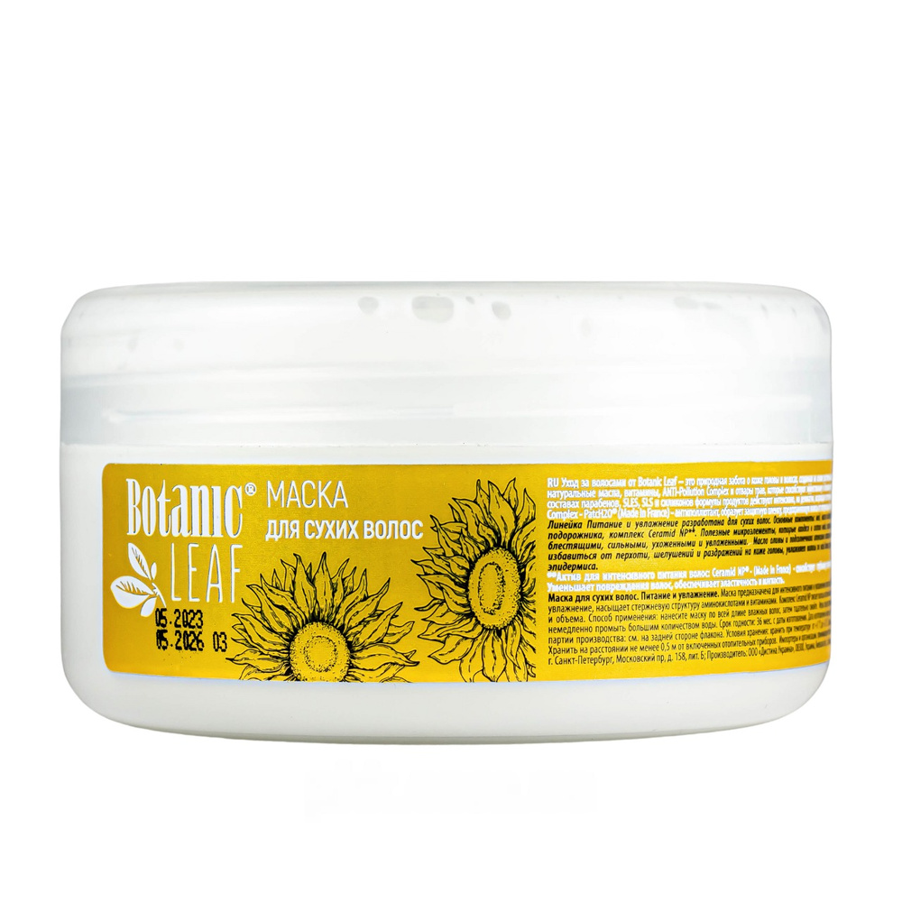 Маска для сухого волосся Живлення та зволоження Botanic Leaf з соняхом та медом 300 мл