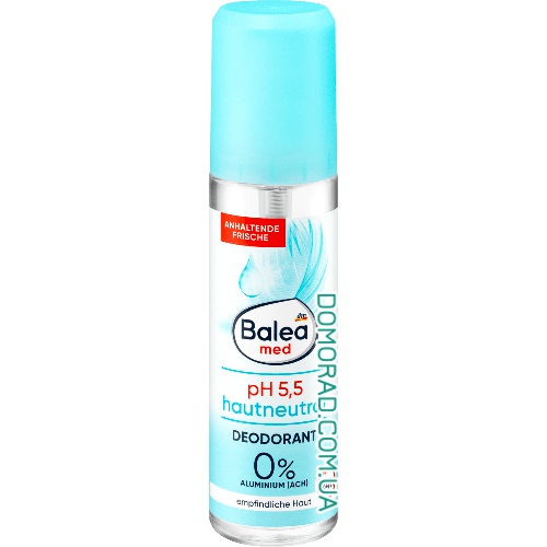 Balea Med pH-neutral для шкіри забезпечує особливий догляд із розпилювачем дезодоранту для особливо чутливої ​​шкіри. Значення pH 5,5 відповідає природному значенню pH захисної кислотної оболонки здорової шкіри. Ніжний, але ефективний, цей дезодорант із нейтральним для шкіри рН дарує вашій шкірі свіжість протягом усього дня. Ефективна 24-годинна активна система забезпечує додаткову безпеку.
