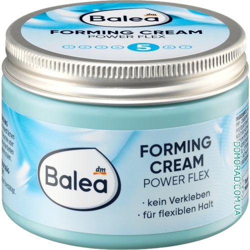 Крем Balea Power Flex Forming Cream дарує вашому волоссю абсолютну свободу форми. Контролюйте свою зачіску та укладайте волосся так, як вам заманеться. Формуючий крем забезпечує форму та стабільність у будь-який час і легко змивається.