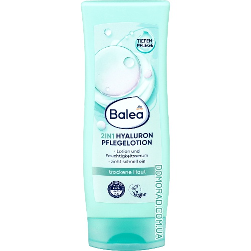 Лосьйон для догляду Balea Hyaluron - це легкий догляд, який забезпечує багате зволоження - для дивовижної м'якості та еластичності шкіри. Формула, яка ніжно тане на шкірі, зволожує та робить шкіру шовковистою. Посилення зволоження забезпечує шовковистість шкіри та її догляд. Гіалуронова кислота і вода опунції забезпечують ефект глибокого догляду.