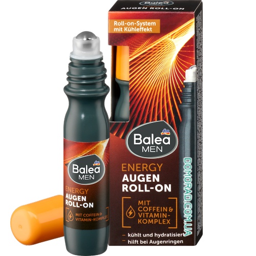 Balea MEN очищає рол-он для очей щодня дарує втомленим очам бадьорливу свіжість. Вміщений вітамінний комплекс, кофеїн і гіалуронова кислота допомагають при темних колах і ознаках втоми і стресу. Ролонна система забезпечує охолоджуючий ефект.