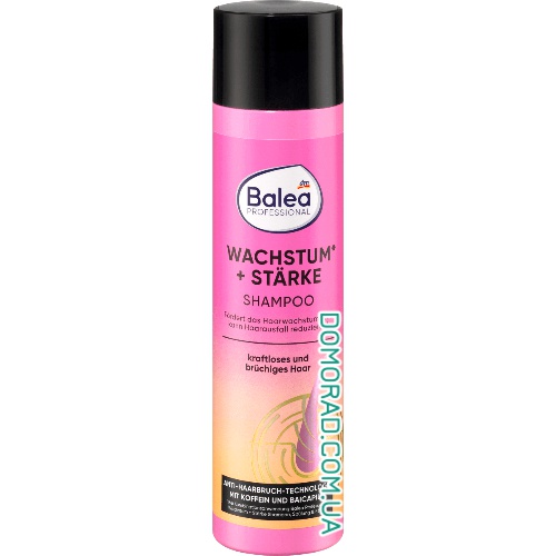 Професійний шампунь Balea Growth + Strength дбайливо очищає волосся та надає йому нової пружності та еластичності. Потужна формула підтримує та сприяє природному росту волосся та допоможе зменшити випадання. Для слабкого та ламкого волосся. З комбінованим використанням шампуню Balea Professional Growth + Strength, кондиціонера та сироватки.