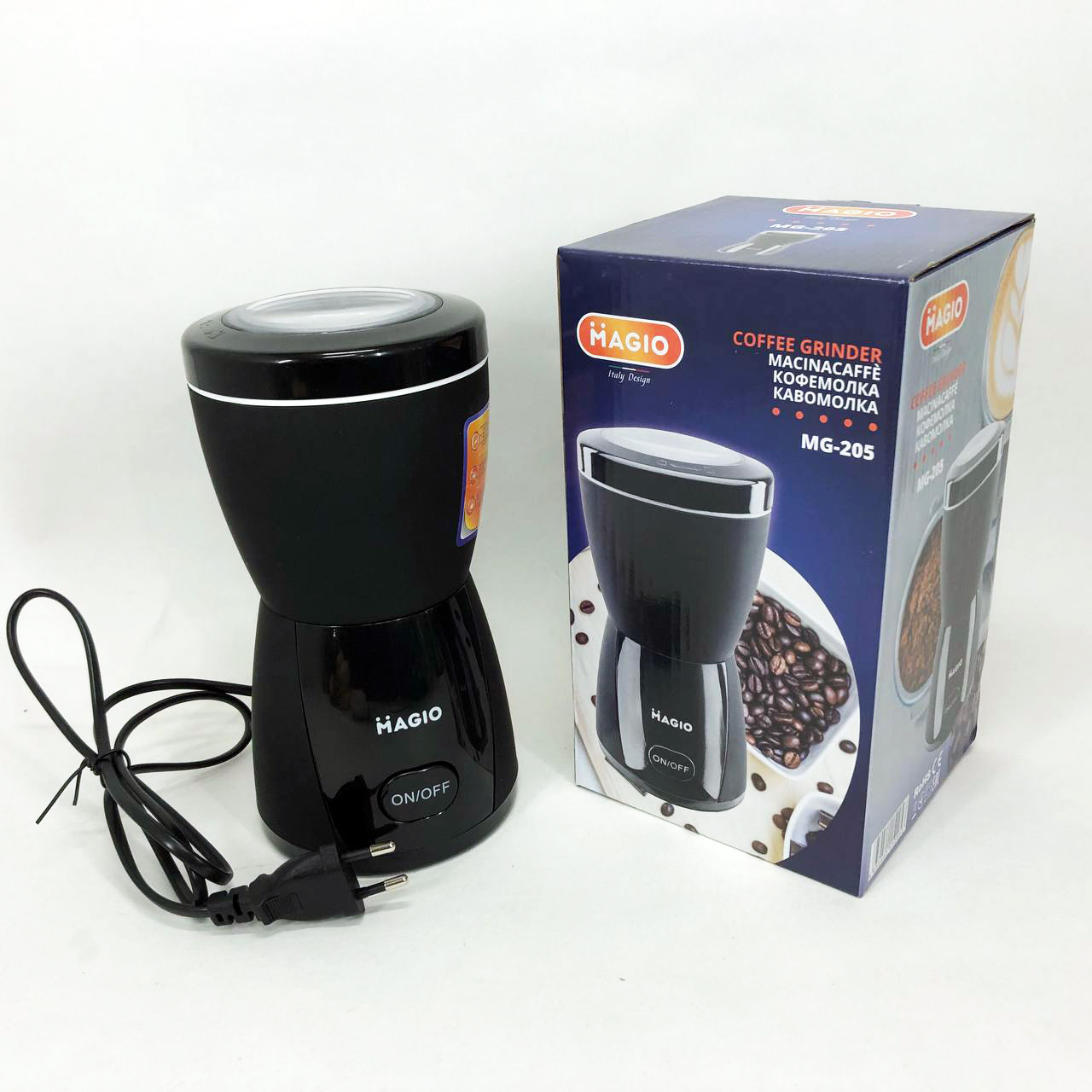 Особливості кавомолки: прозора кришка. Корпус та леза з нержавіючої сталі. Система безпеки: експлуатація можлива лише із закритою кришкою. Відсік для зберігання шнура. Завдяки кавомолці Magio МG-205 Ви зможете щоранку радувати себе улюбленими кавовими напоями.