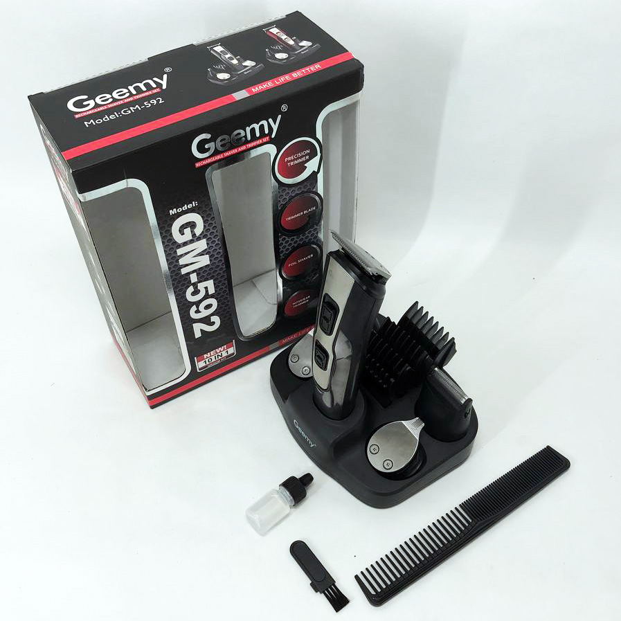 Машинка для стрижки 10в1 GEMEI GM-592, тример для бороди, триммер бездротової. Колір: чорний