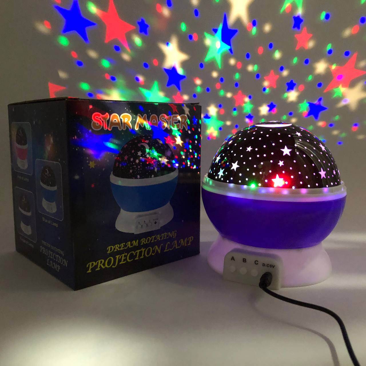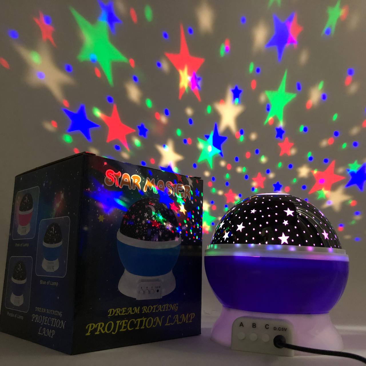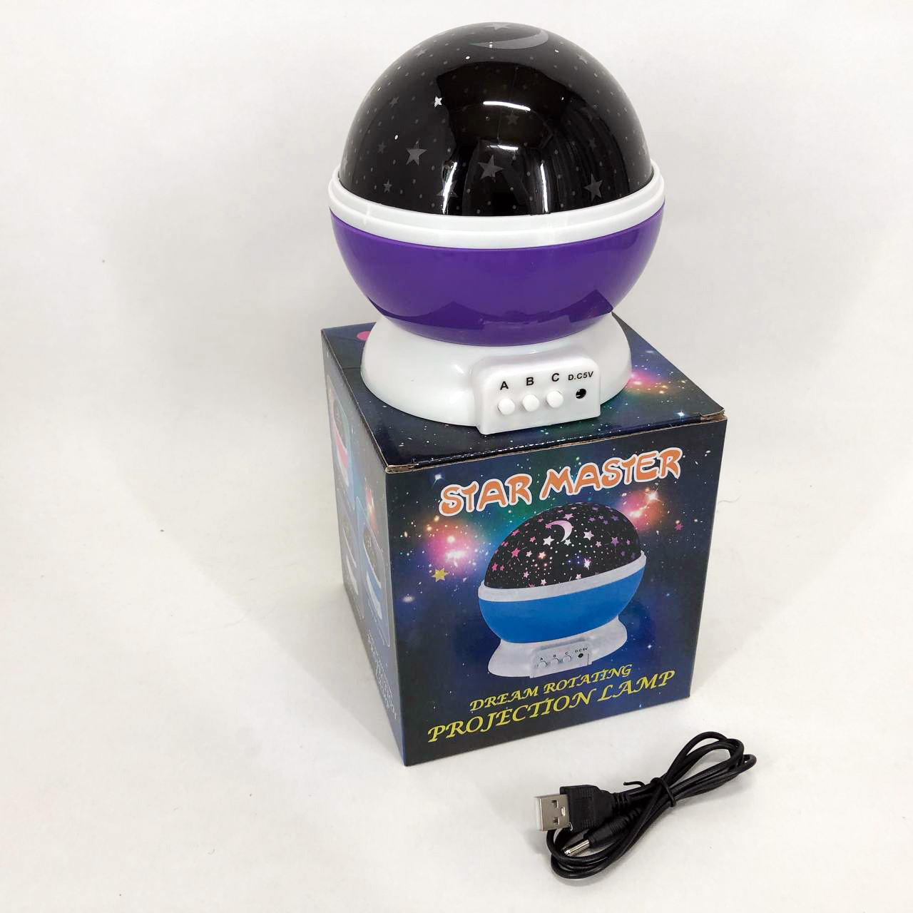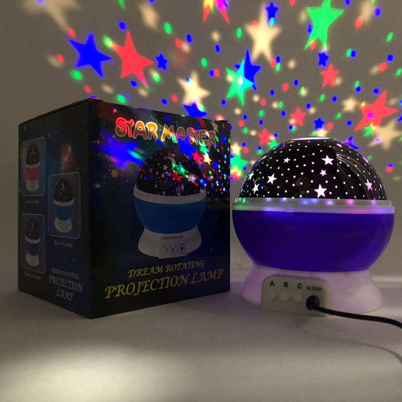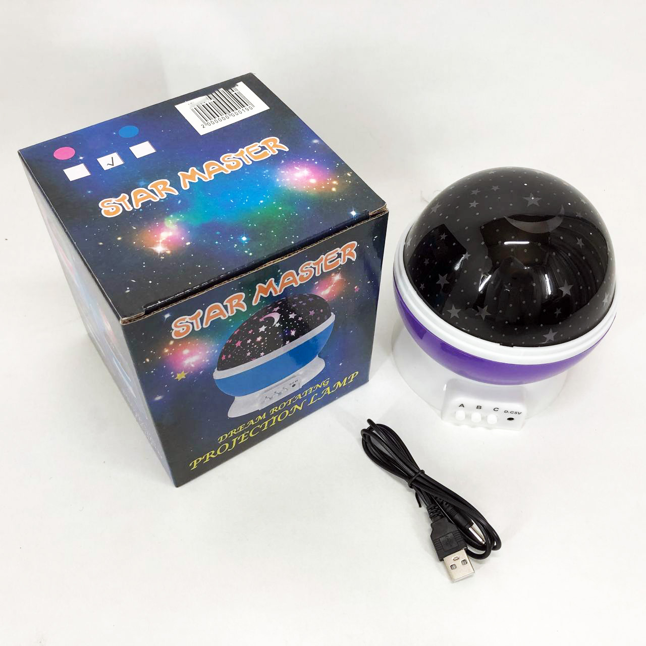 Круглий обертовий проектор зоряного неба Star Master Dream прекрасний подарунок для вашої дитини. Він освітить кімнату вашого малюка чудовими зірками та місяцем. Живлення світильника можливе від USB-проводу або чотирьох батарейок типу AAA.