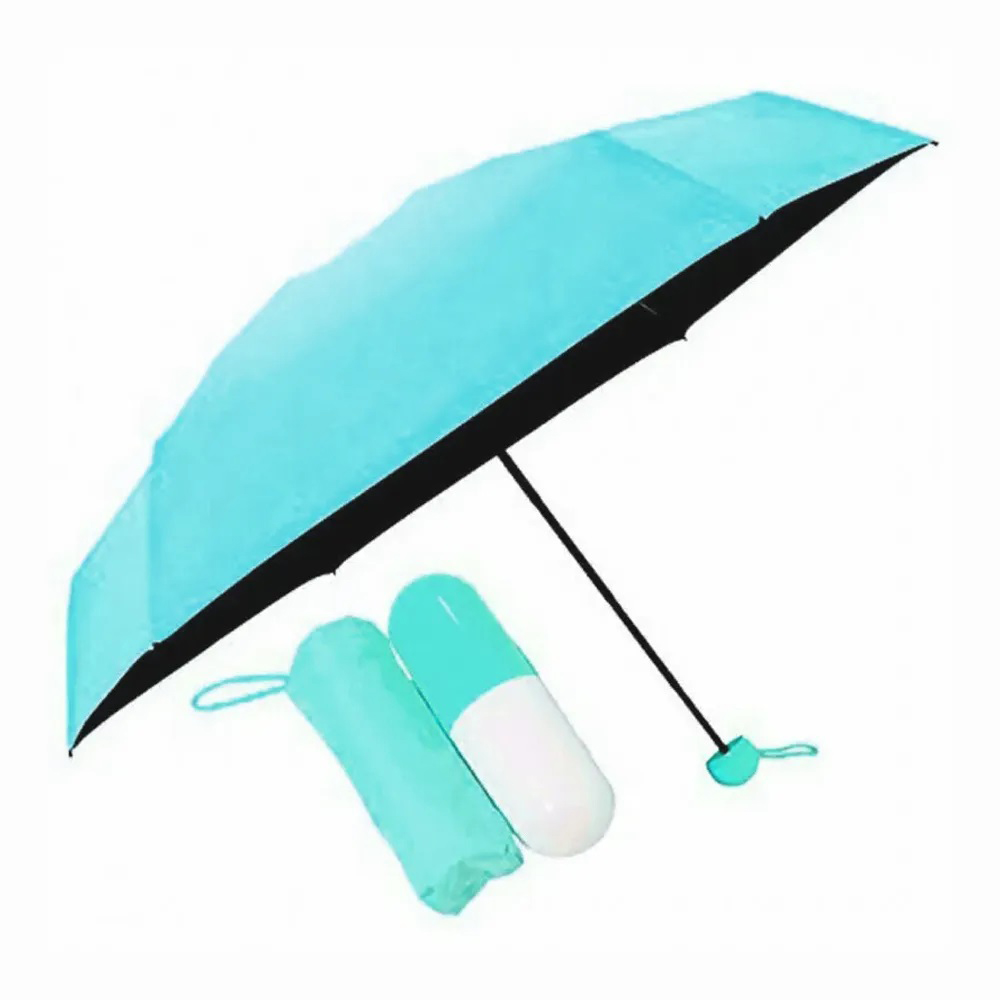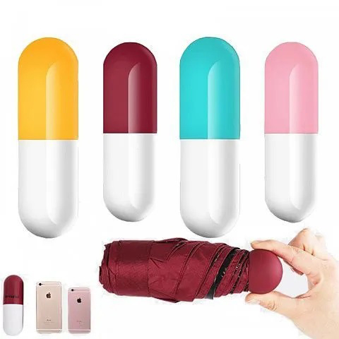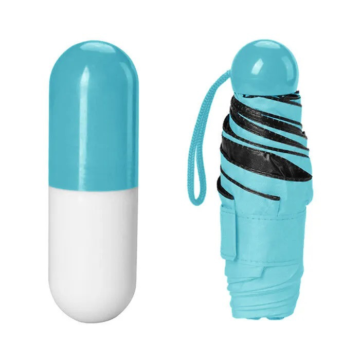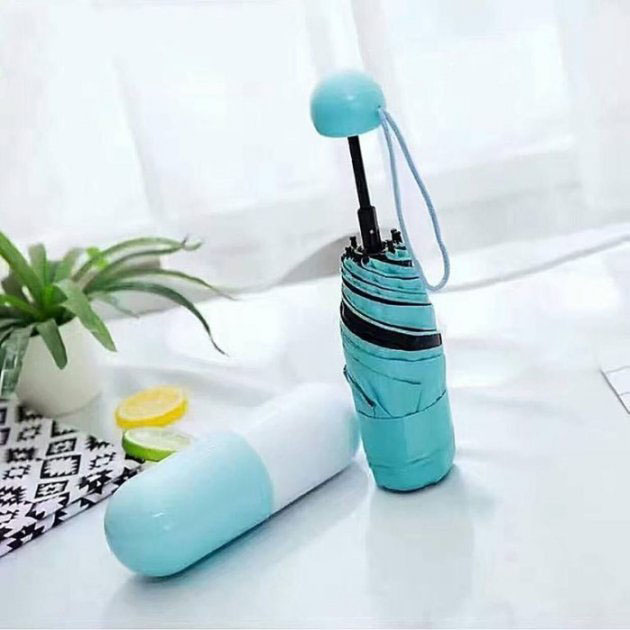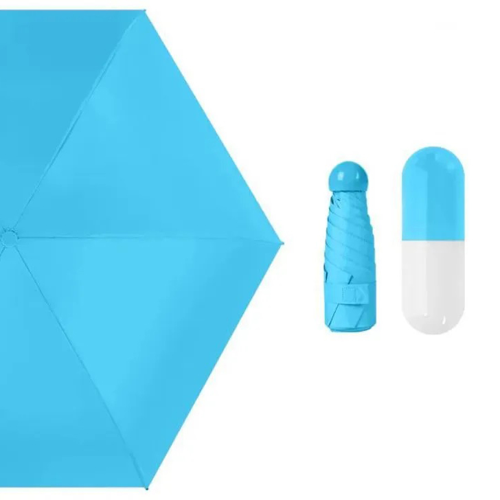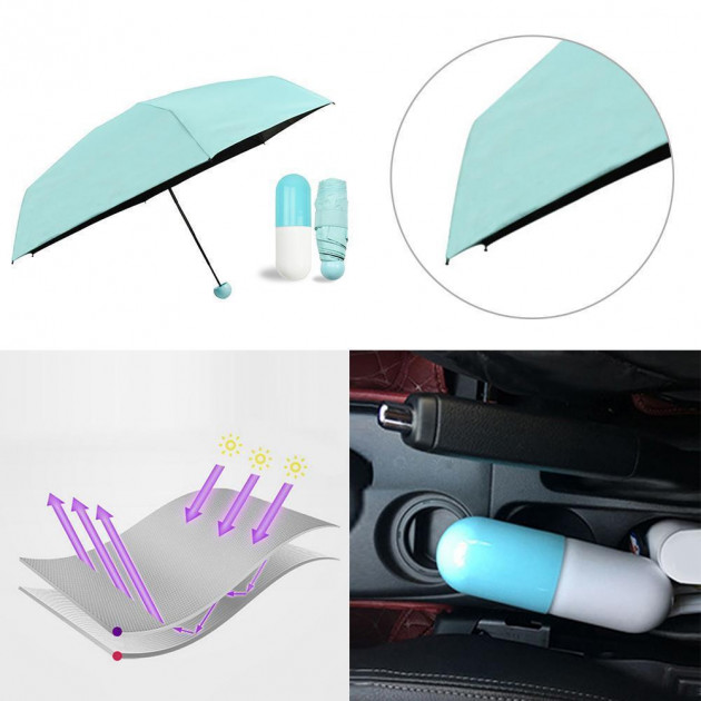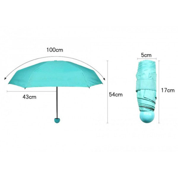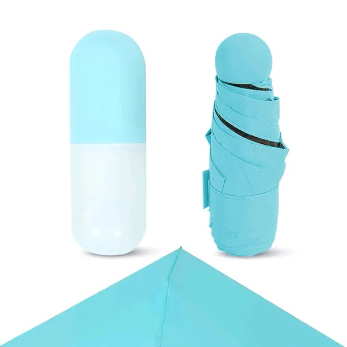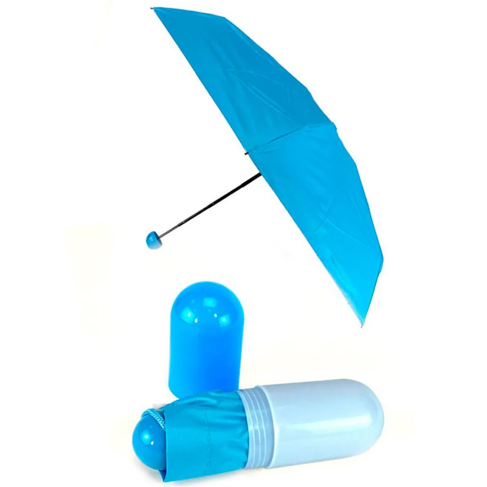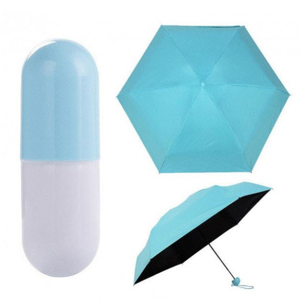 Універсальна міні-парасолька в капсулі має компактні розміри, за рахунок яких чудово поміщається в кишеню, сумочку, рюкзак. Головна особливість виробу — його розмір. У складеному вигляді він міститься на долоні. Його довжина становить лише 17 см.