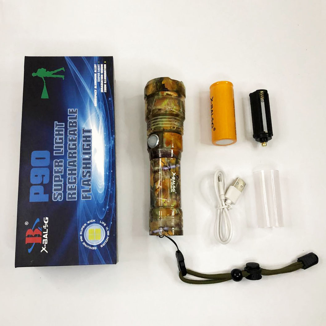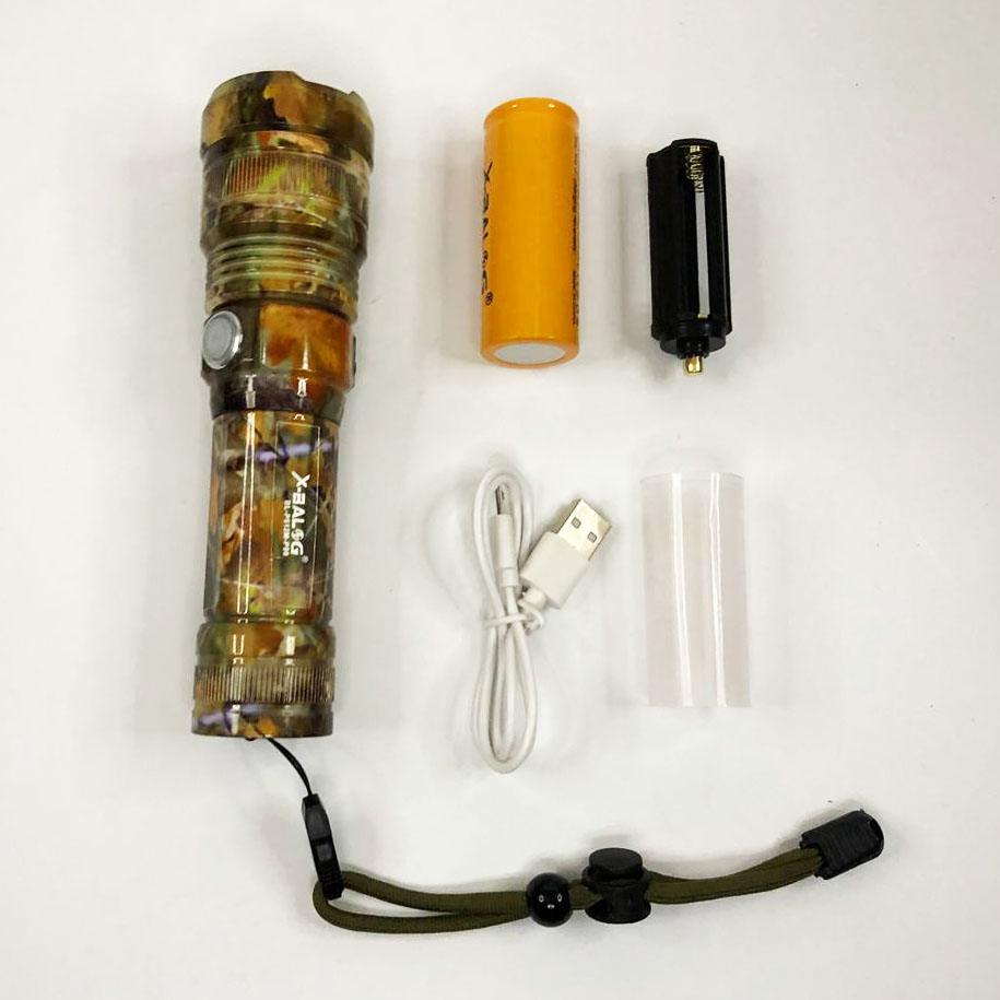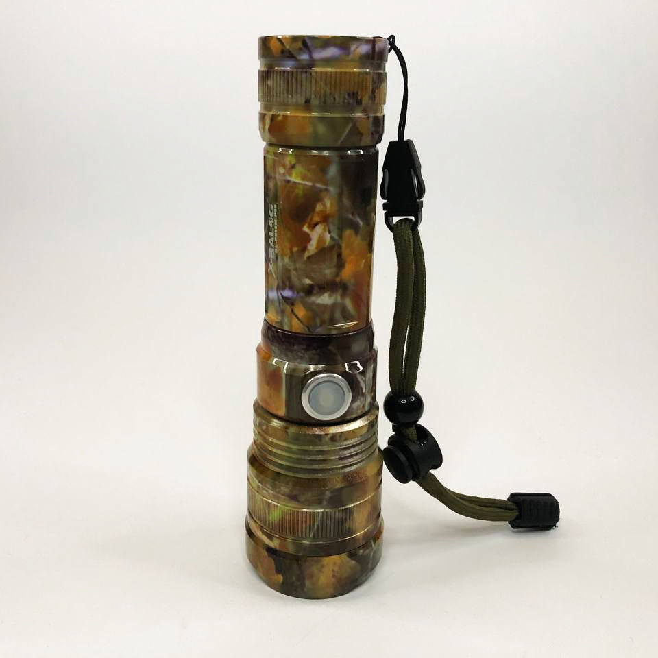 Ліхтарик ручний Bailong BL-P512M-P90. Пофарбовані в стилі камуфляжу. Ліхтар спеціально виконаний у протиударному (метал – анодований алюміній), стійкому від вологи та пилу корпусі.