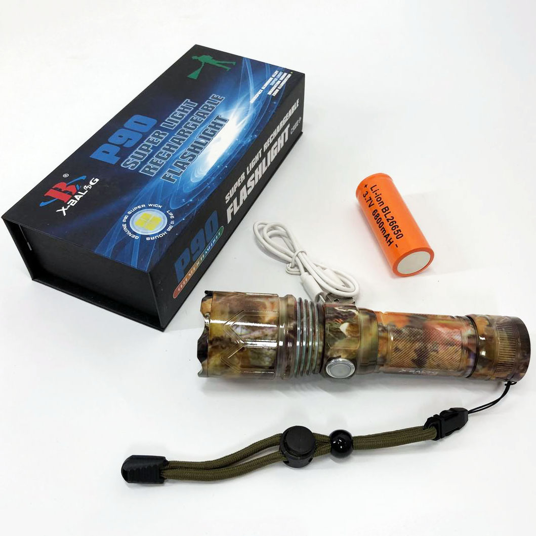 Ліхтарик ручний тактичний Bailong BL-P511M-P90 камуфляж, супер яскравий ліхтарик, потужний кишеньковий ліхтарик