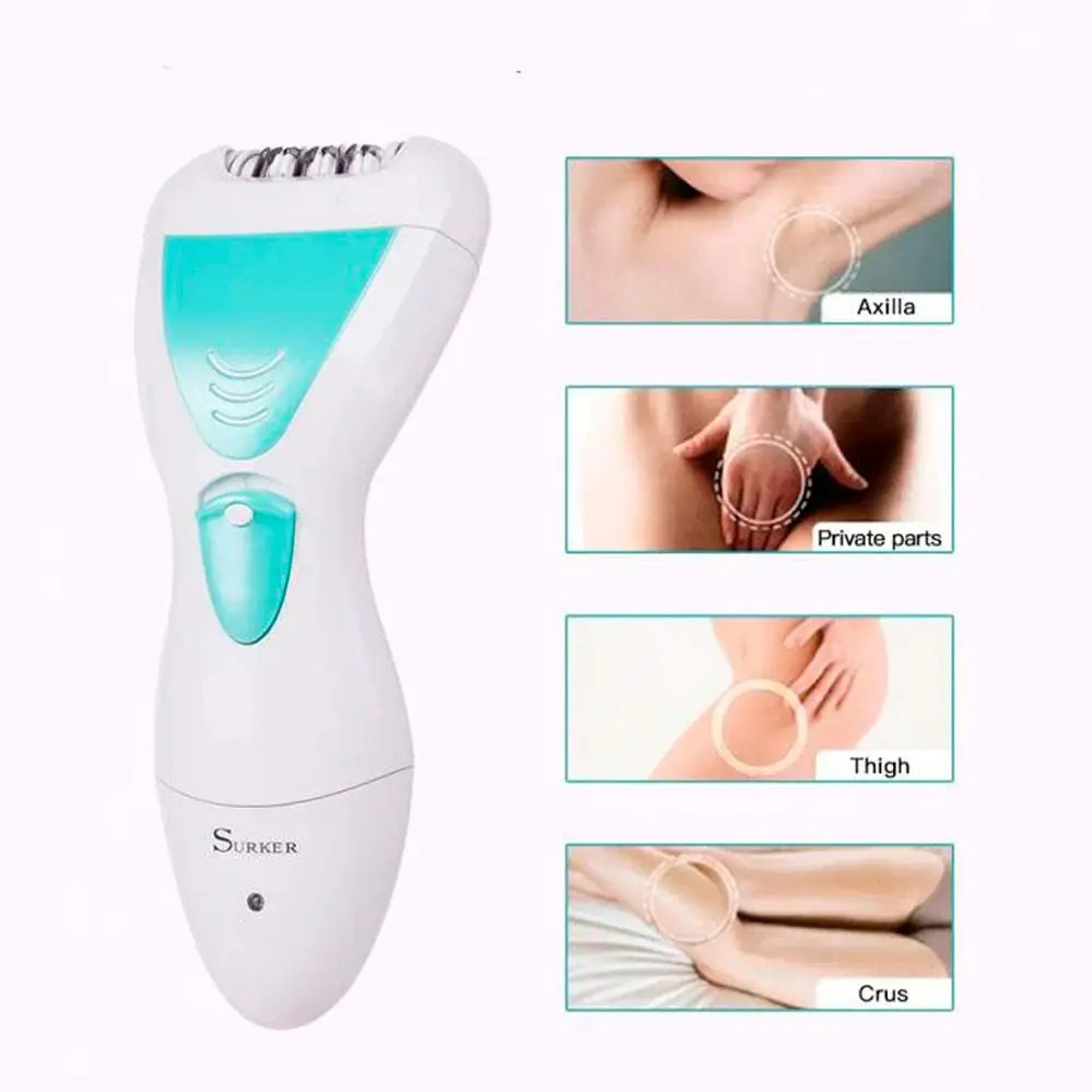 Епілятор Gemei GM-7006 4в1 - Професійний бездротовий епілятор бритва з насадками триммер + пемза