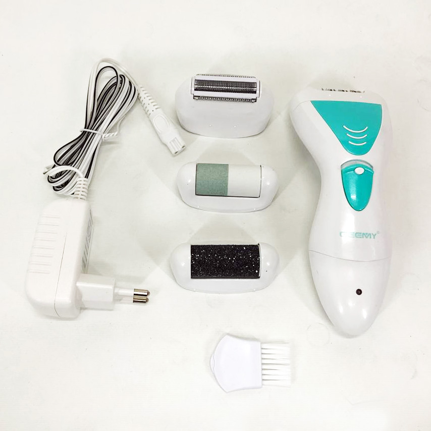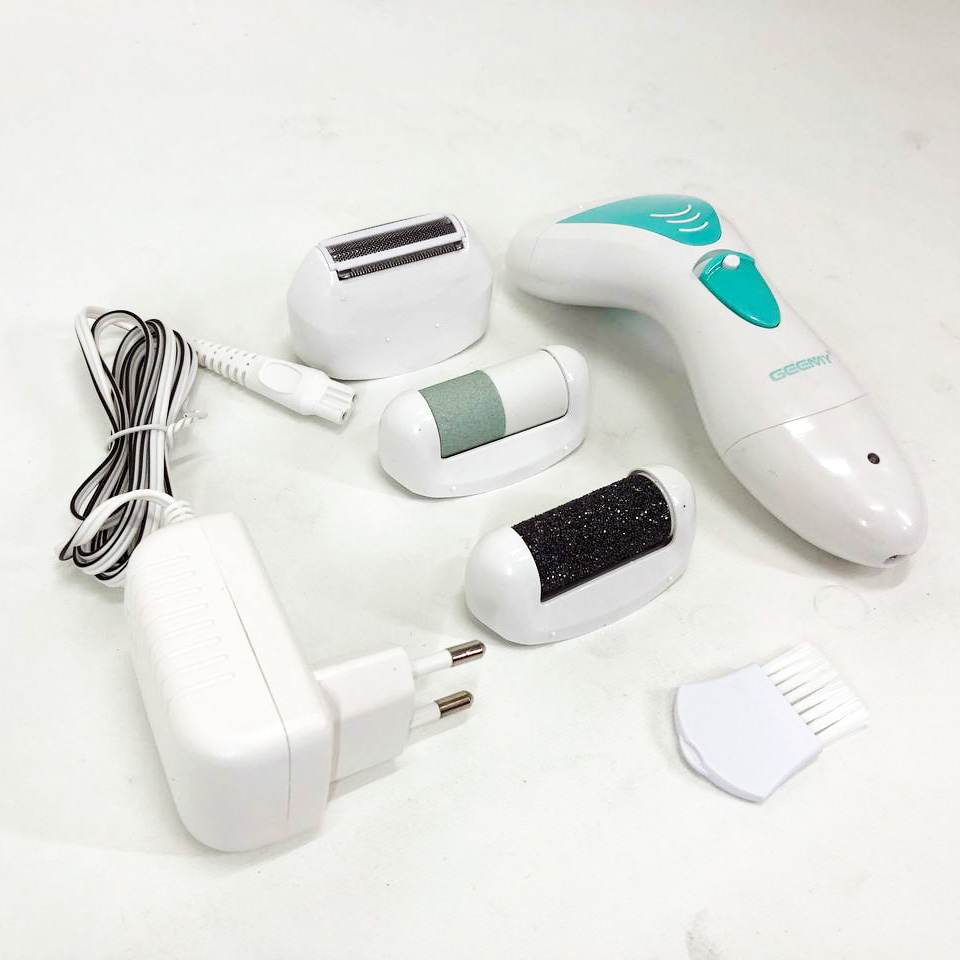 Епілятор Gemei GM 7006 має 4 насадки: основна для якісної епіляції, бритва з подвійним лезом і триммером для легкого збривання, насадка-пемза для позбавлення від мозолів, натоптишів, огрубех насадка для філування.