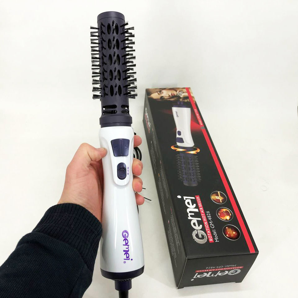 Фен-щітка Gemei GM 4826 – відмінний та недорогий прилад для догляду за жіночою красою. Має потужність нагріву 1000 W, що дозволяє робити укладання волосся різної структури. Фен-щітка Gemei хороша тим, що має функцію двостороннього обертання: “за годинниковою” і “проти годинникової стрілки”. Перемикаються режими обертання двома кнопками великого розміру на корпусі пристрою. Корпус пластиковий ергономічні форми. Округлі форми дозволяють легко утримувати гребінець і комфортно працювати тривалий проміжок часу. Випрямляч має 2 основні температурні режими роботи. Спеціальна конструкція мережевого шнура дозволяє останньому обертатися на 360 С. Це дуже зручно та практично