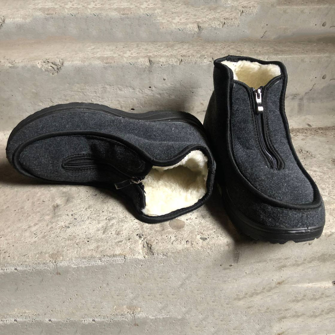 Дизайн виробу витриманий у темно-сірому відтінку, що робить його універсальним для щоденного використання. Черевики мають укорочений силует і акуратну форму, яка підходить як для домашнього носіння, так і для коротких виходів на вулицю. Підошва виготовлена з міцного матеріалу з протиковзким рельєфом, що забезпечує стабільність навіть на слизьких поверхнях.