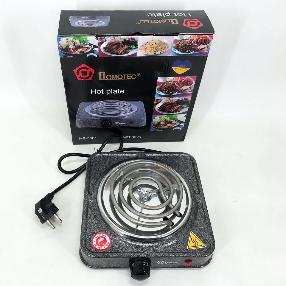 Електроплита спіральна настільна плита Domotec MS-5801 1000 Вт, Переносна компактна електроплита