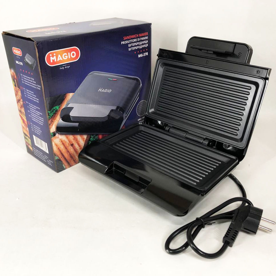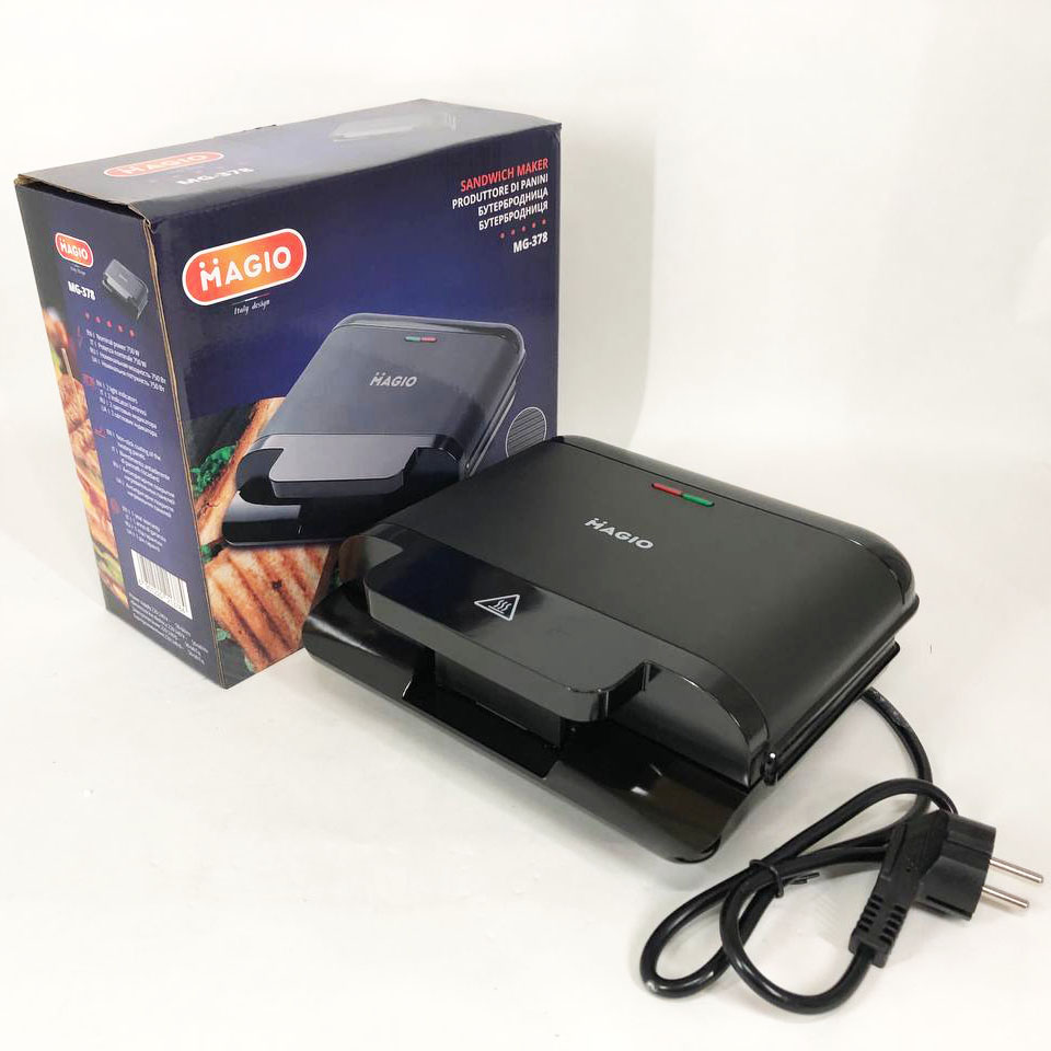 Бутербродниця MAGIO MG-378 750 Вт з антипригарним покриттям, Настільний гриль електричний-притискний