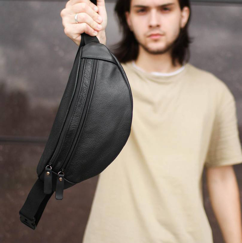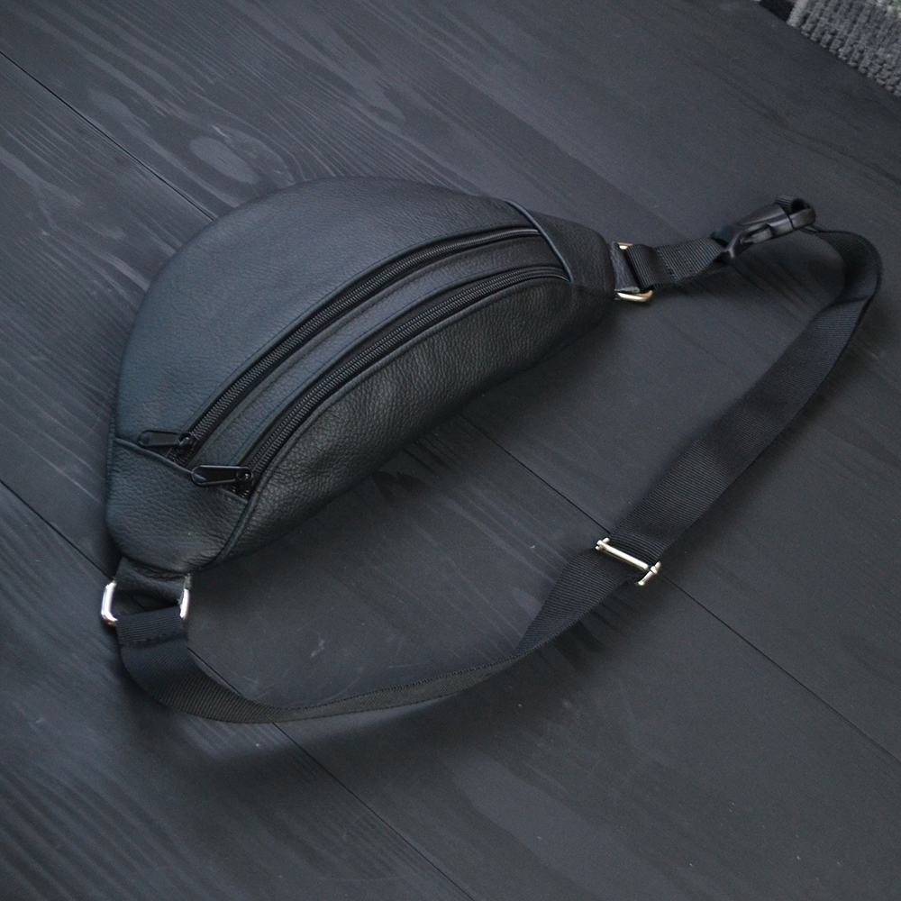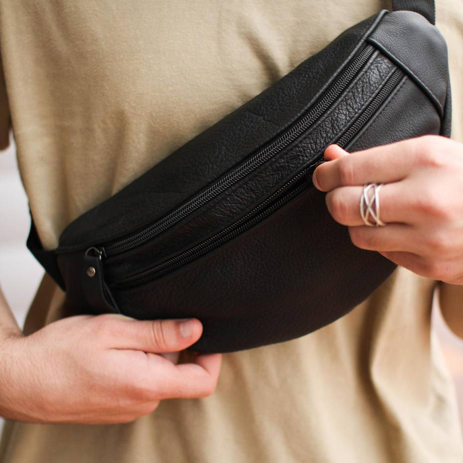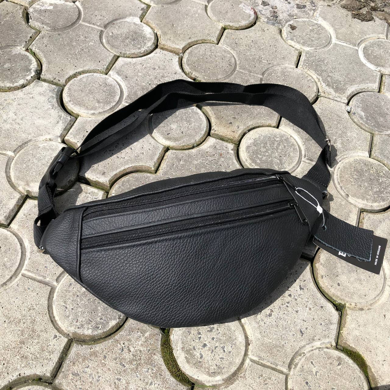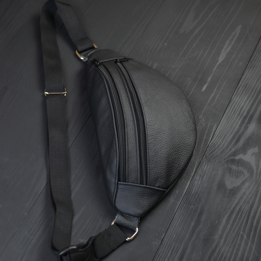 Бананка з натуральної шкіри, сумка чоловіча-жіноча барсетка чорна сумочка