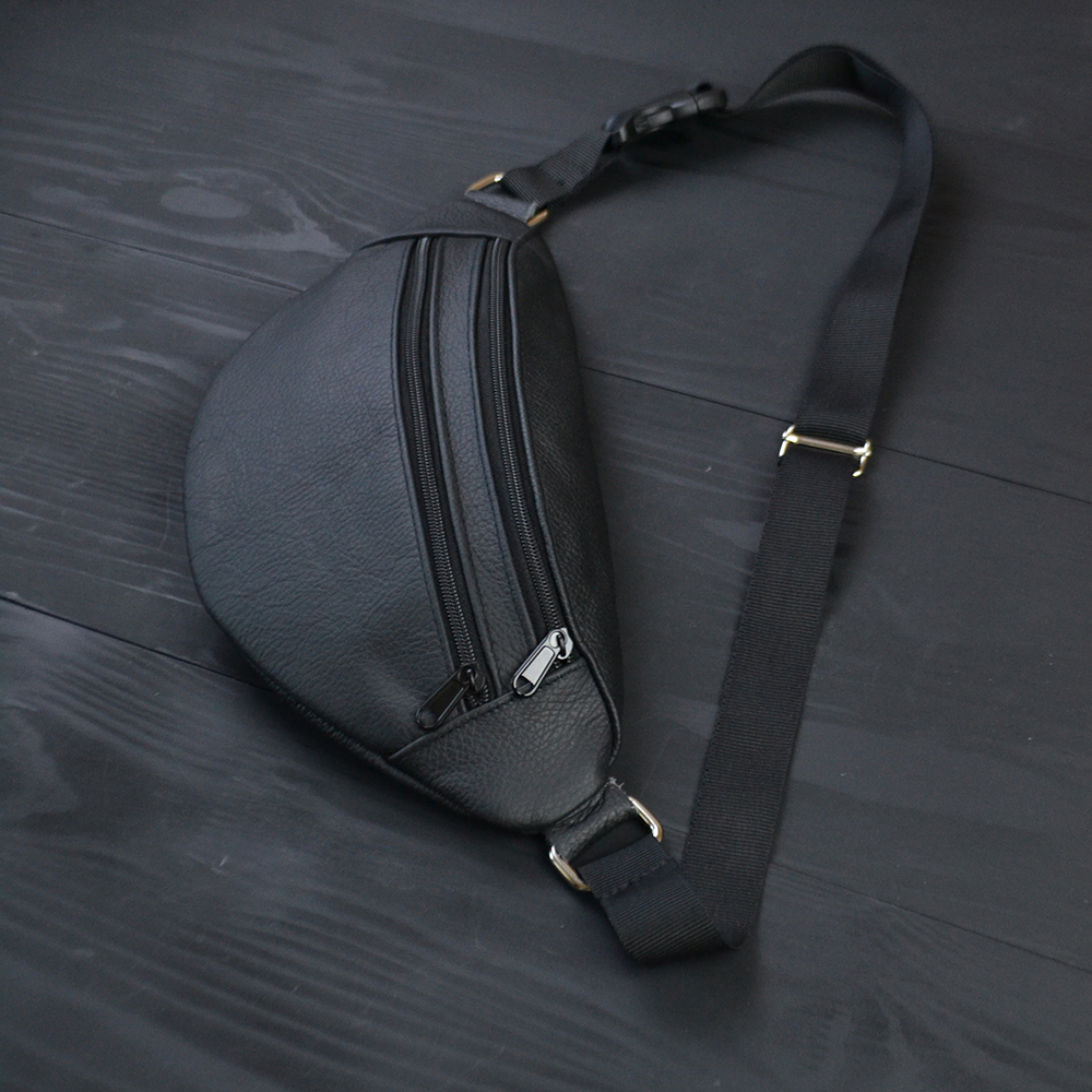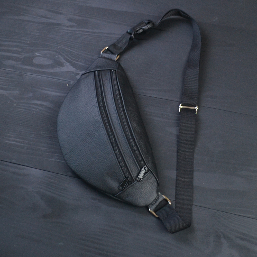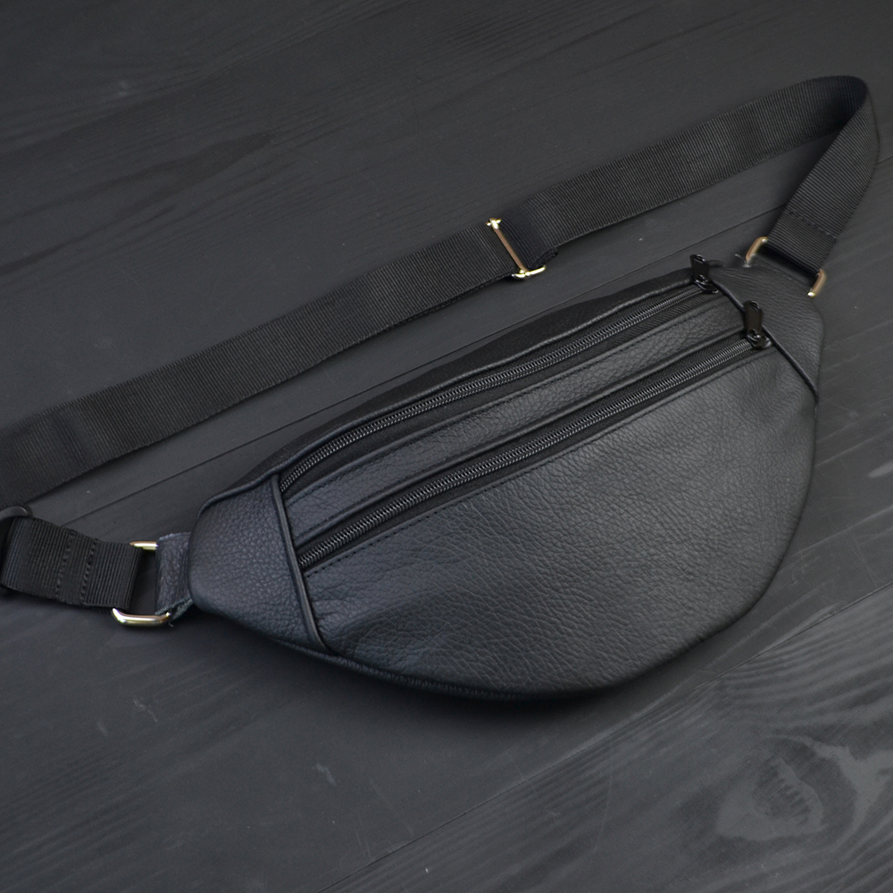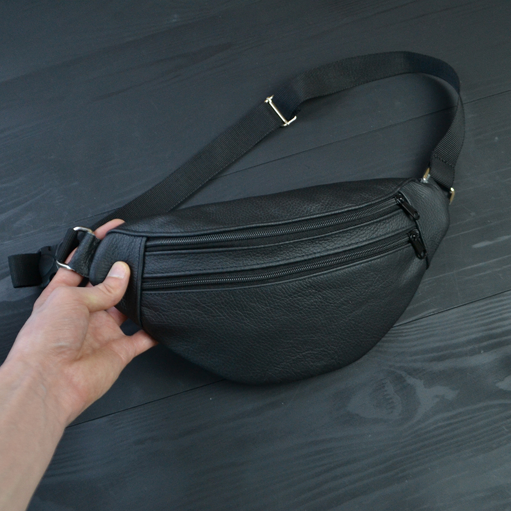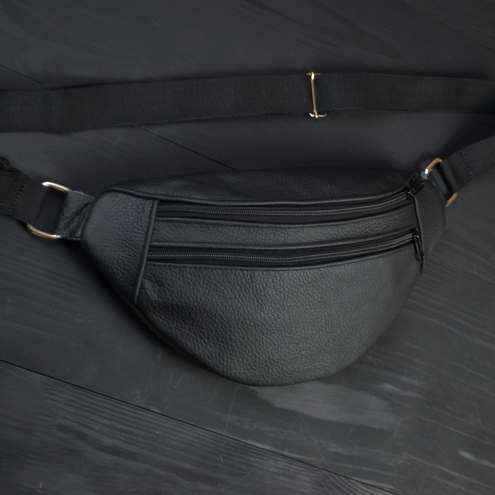 Бананка з натуральної шкіри, сумка чоловіча-жіноча барсетка чорна сумочка