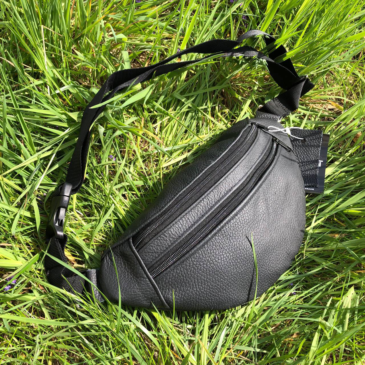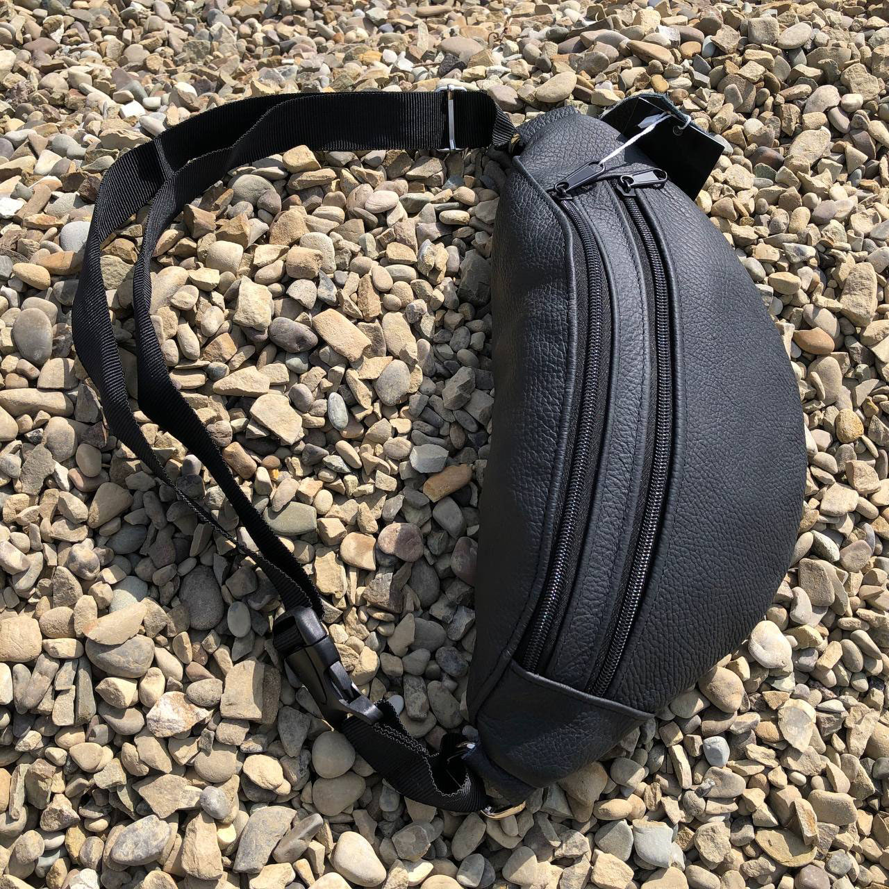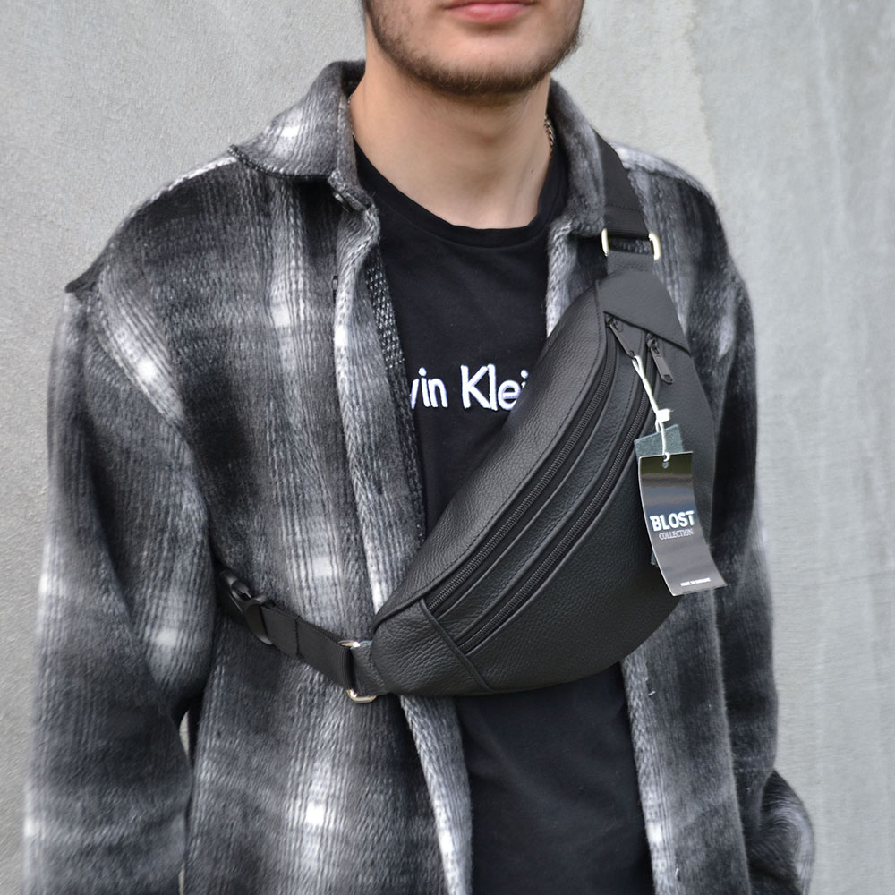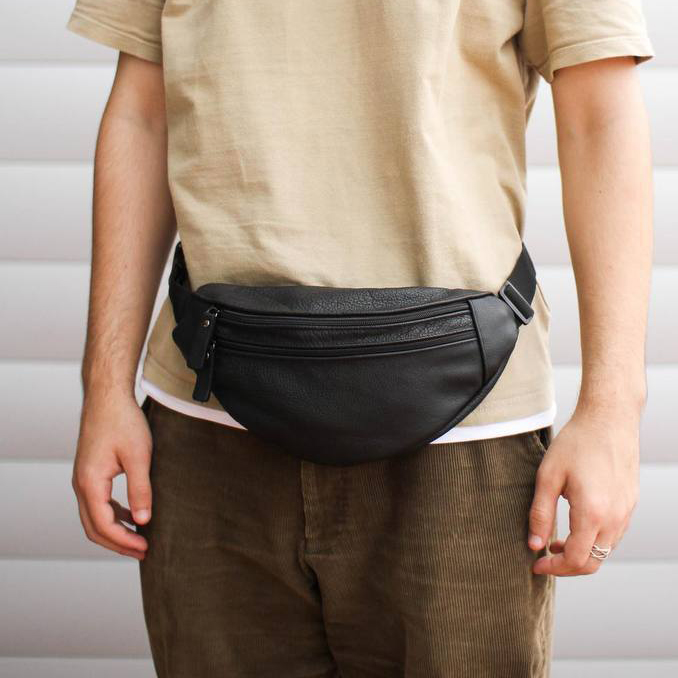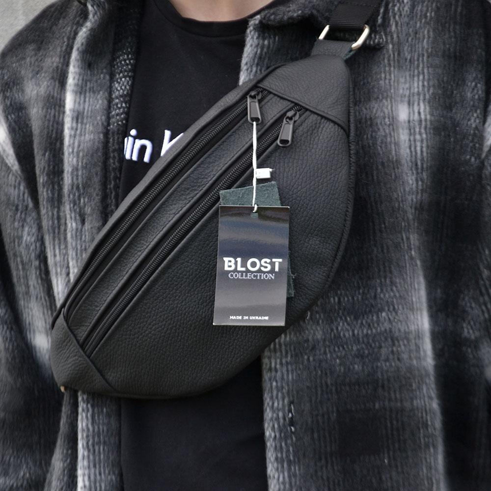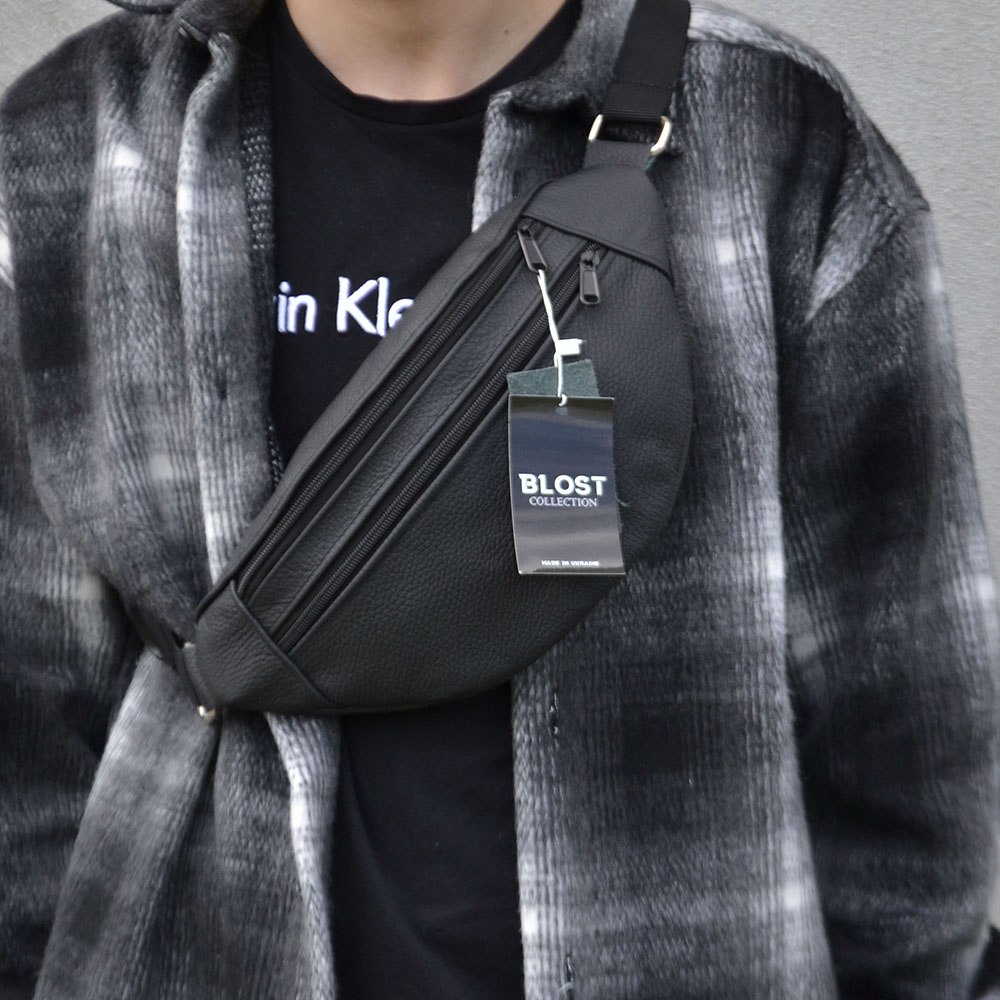 Бананка з натуральної шкіри, сумка чоловіча-жіноча барсетка чорна сумочка