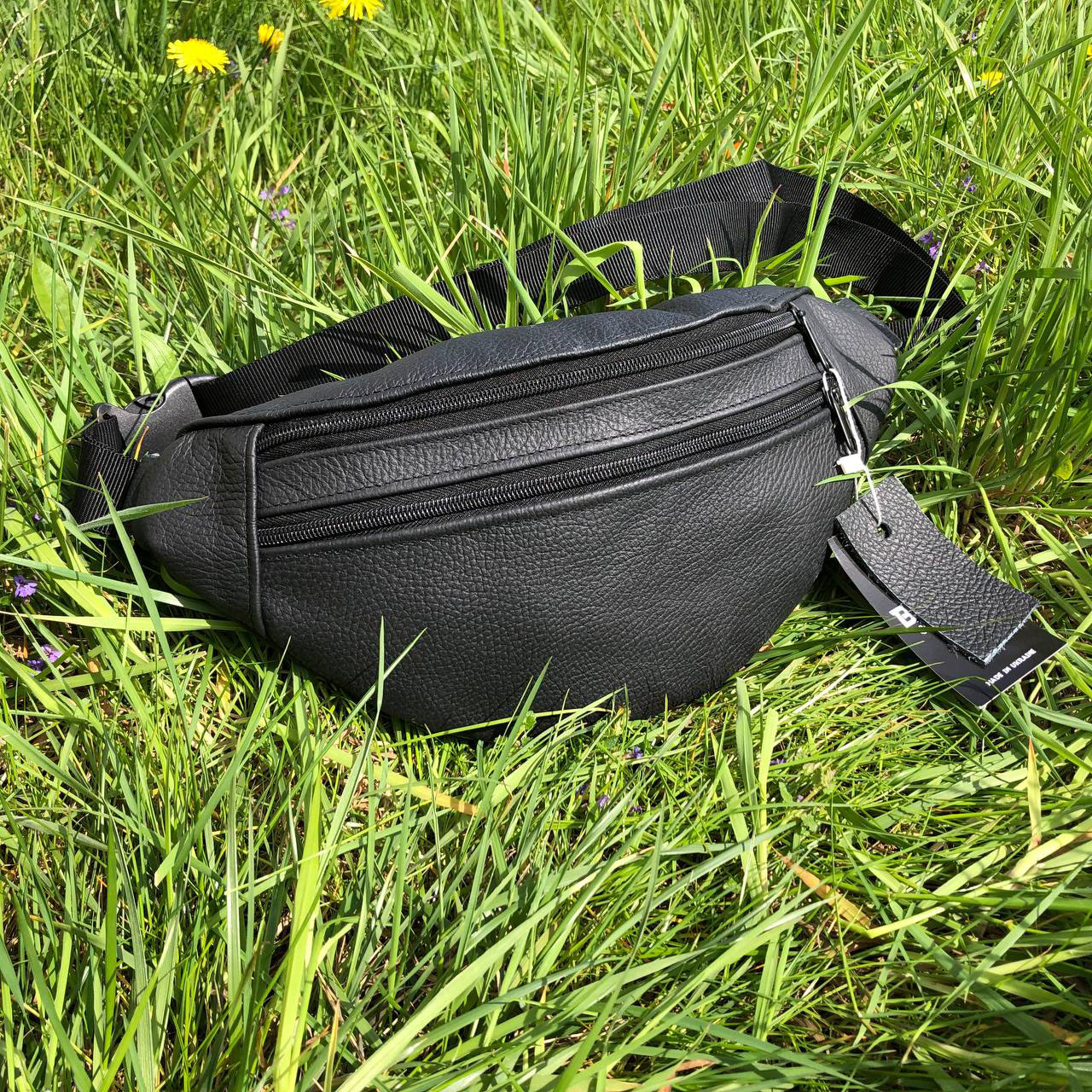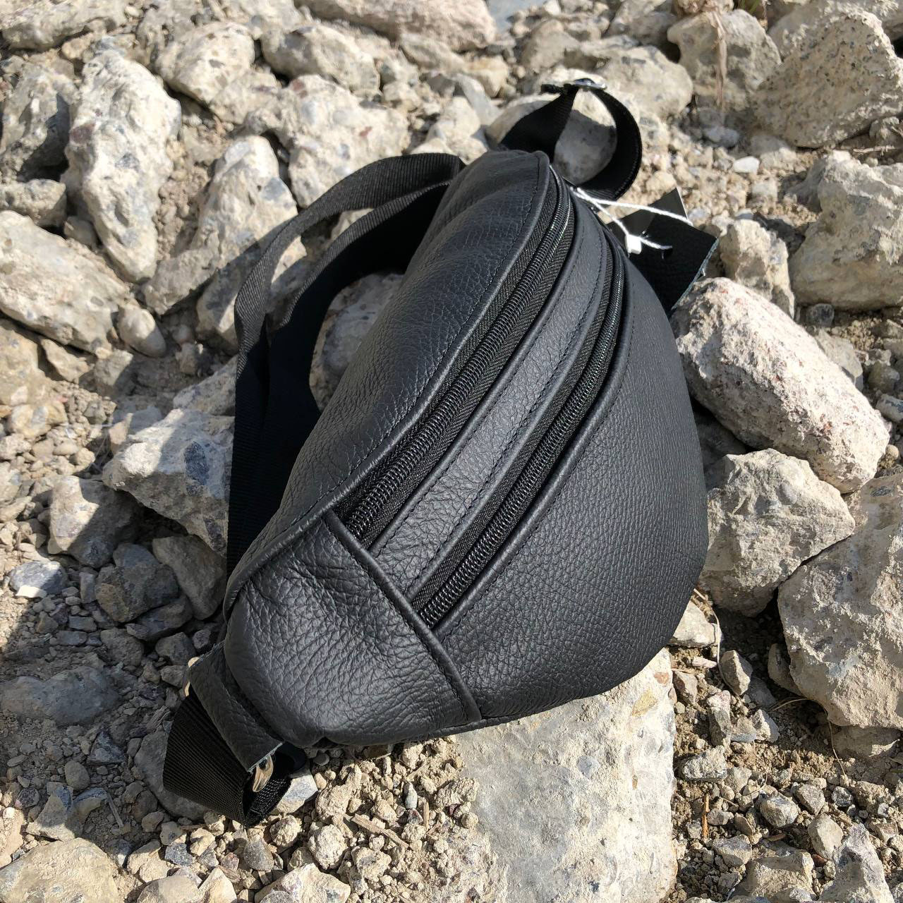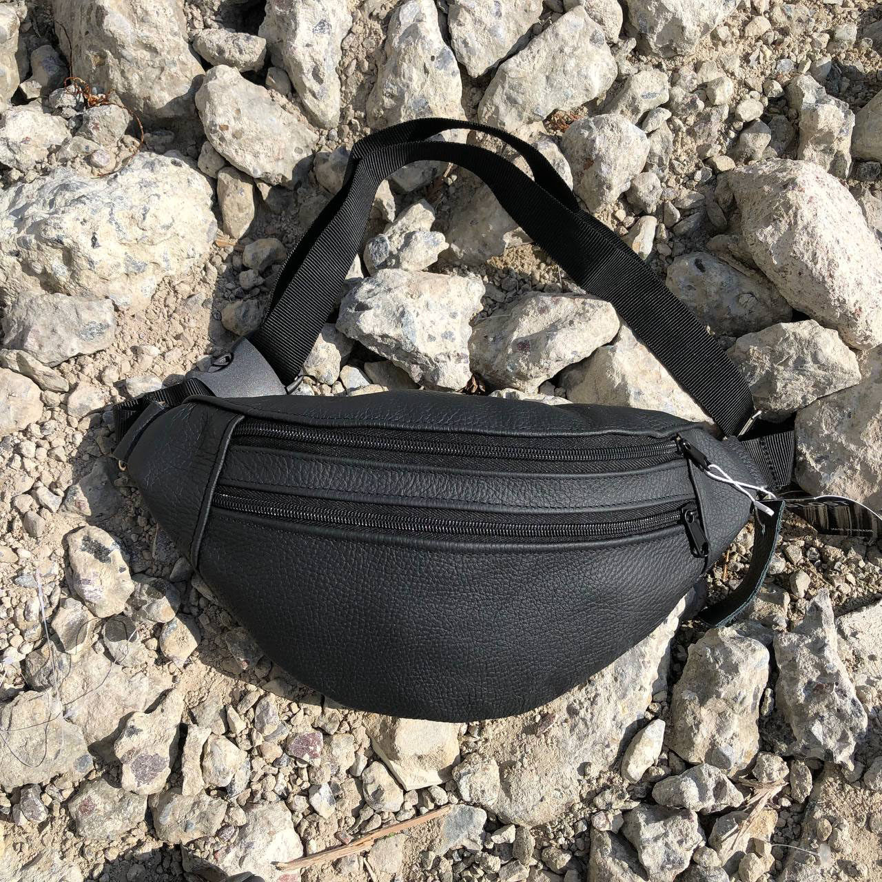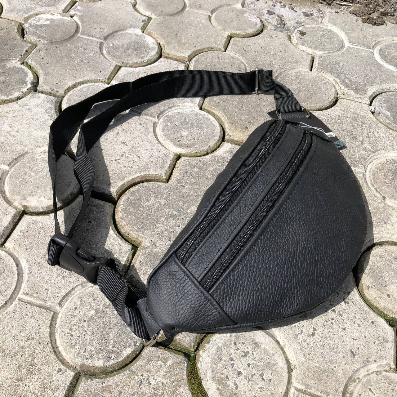 Бананка з натуральної шкіри, сумка чоловіча-жіноча барсетка чорна сумочка