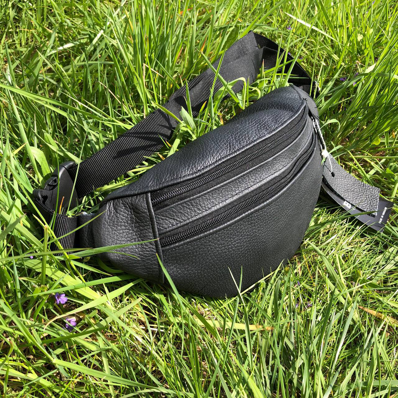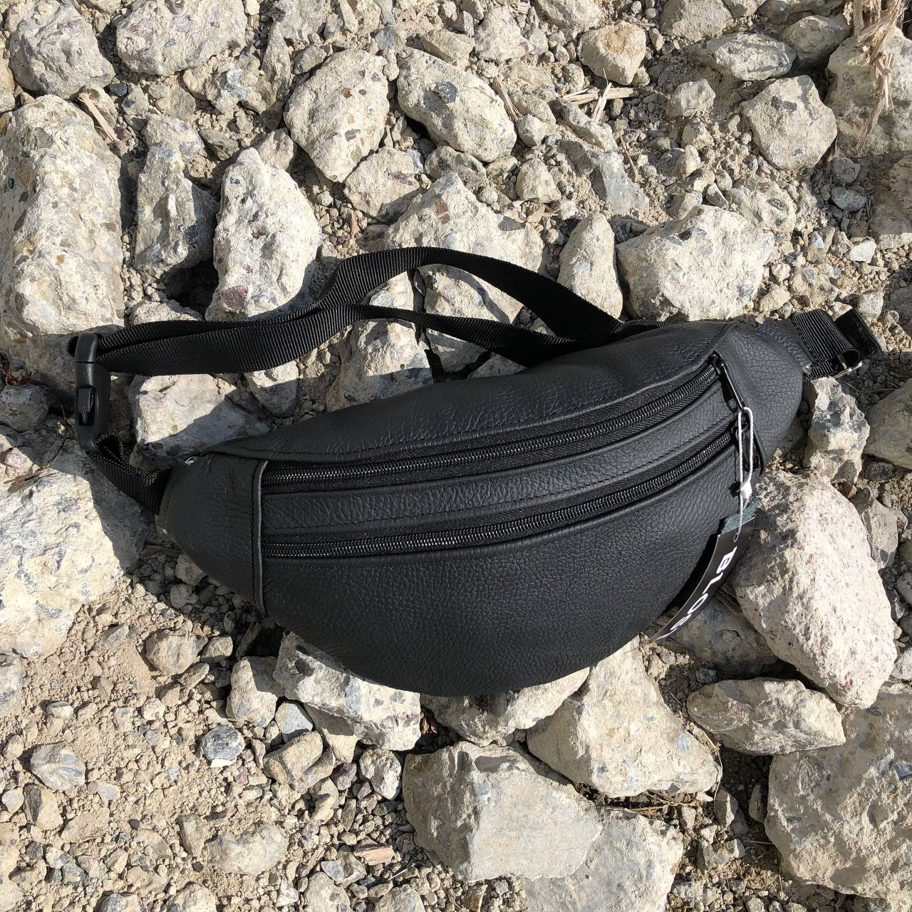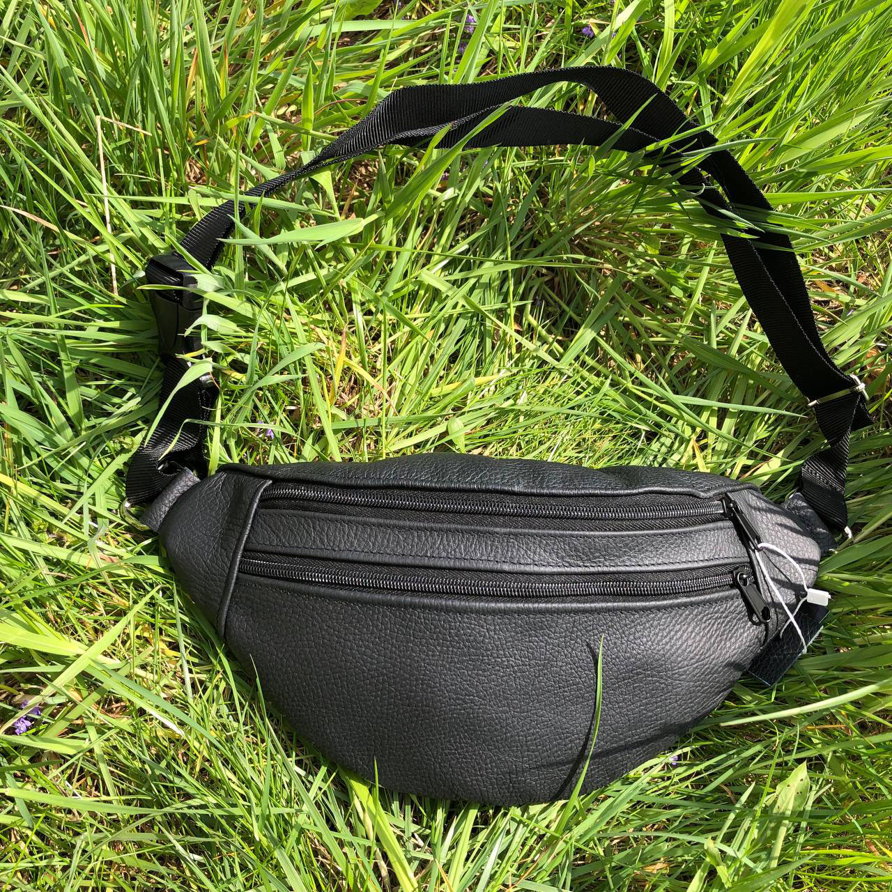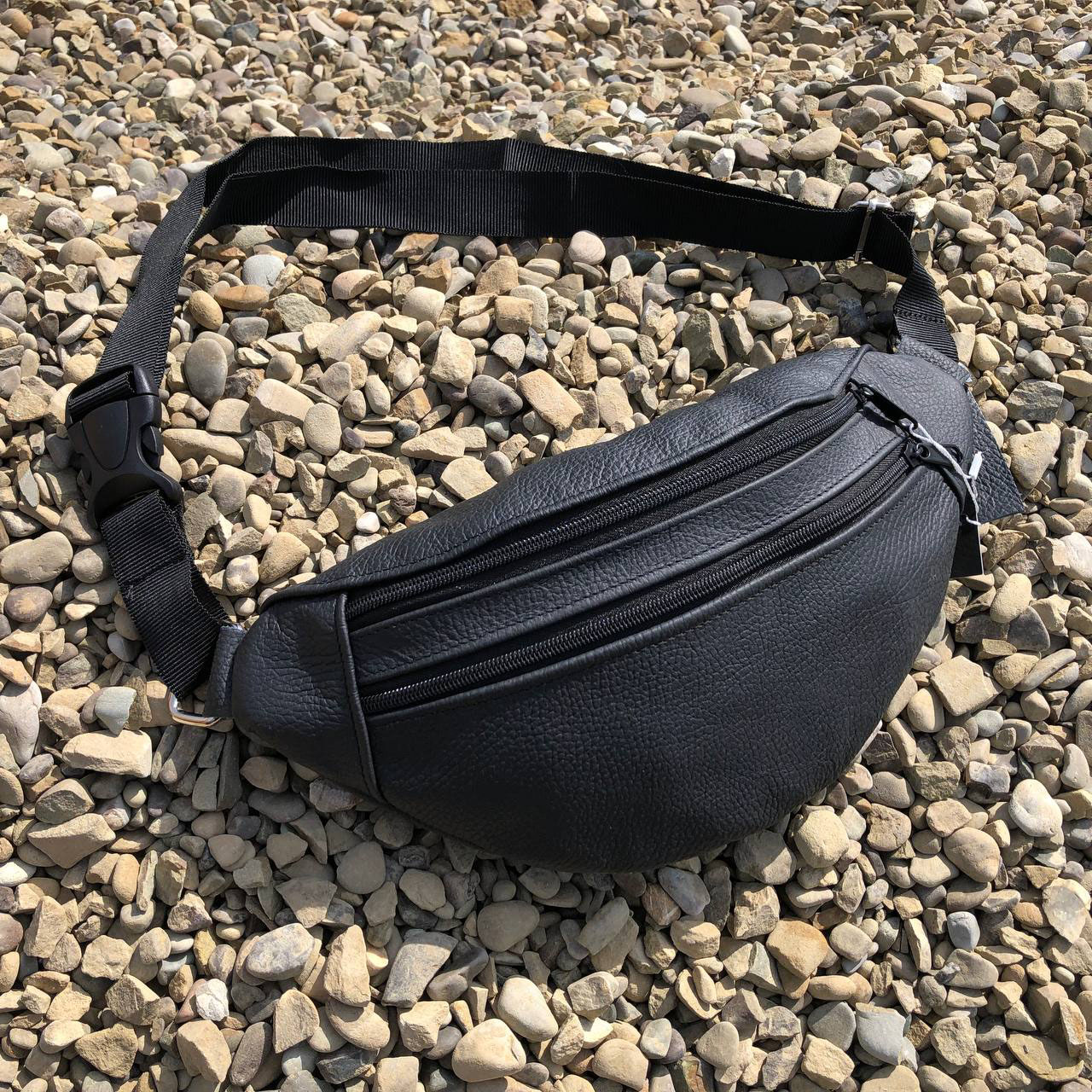 Бананка з натуральної шкіри, сумка чоловіча-жіноча барсетка чорна сумочка