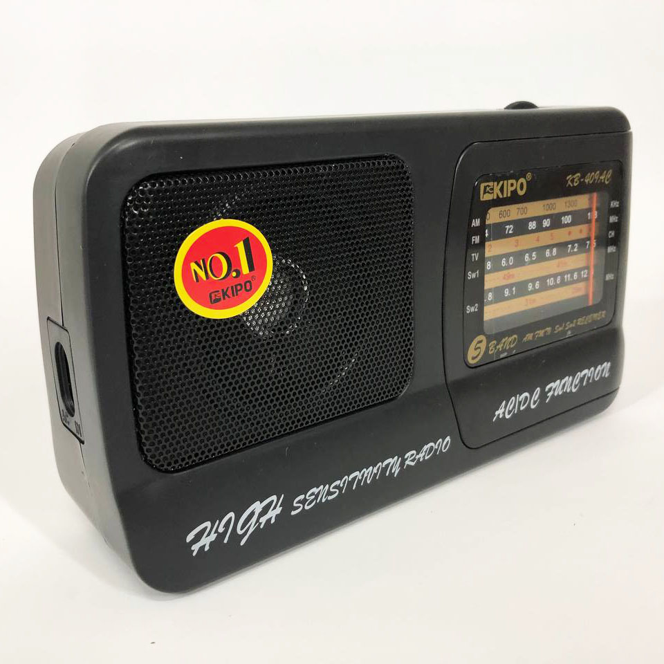 Радіоприймач Kipo KB 409 АС ― плавні лінії корпусу, великий покажчик частот, телескопічна антена ― простий, але має всі необхідні для радіоприймання апарат. При необхідності може працювати на звичайних батареях і від мережі 220 V. Надійний радіоприймач, розширений діапазон FM.